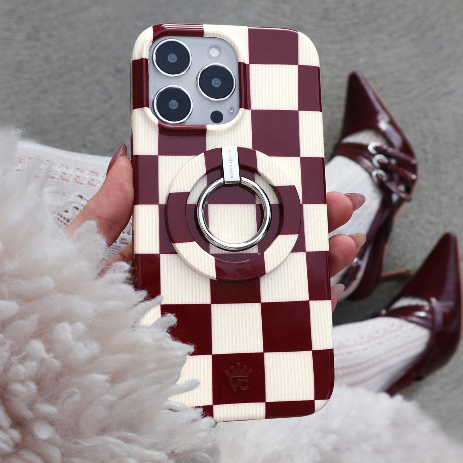 Check Please! This stunning burgundy and cream case is a total vibe with vintage inspired lines throughout the cream checks.