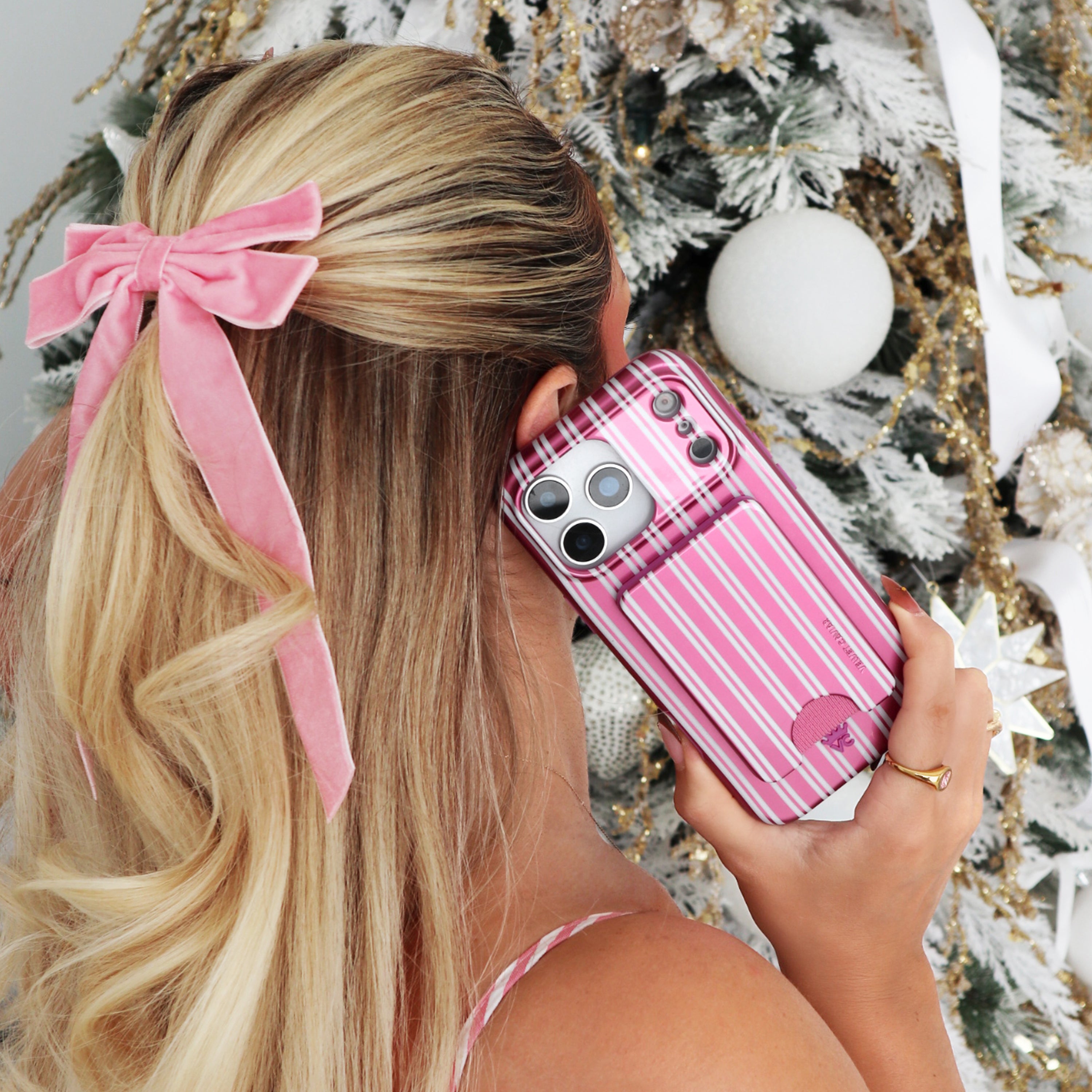 Happy Holidays! This protective case features pink chrome and glossy white candy cane stripes throughout. This case is part of our Limited Edition Holiday Dreams collection celebrating Christmas and Hanukkah.