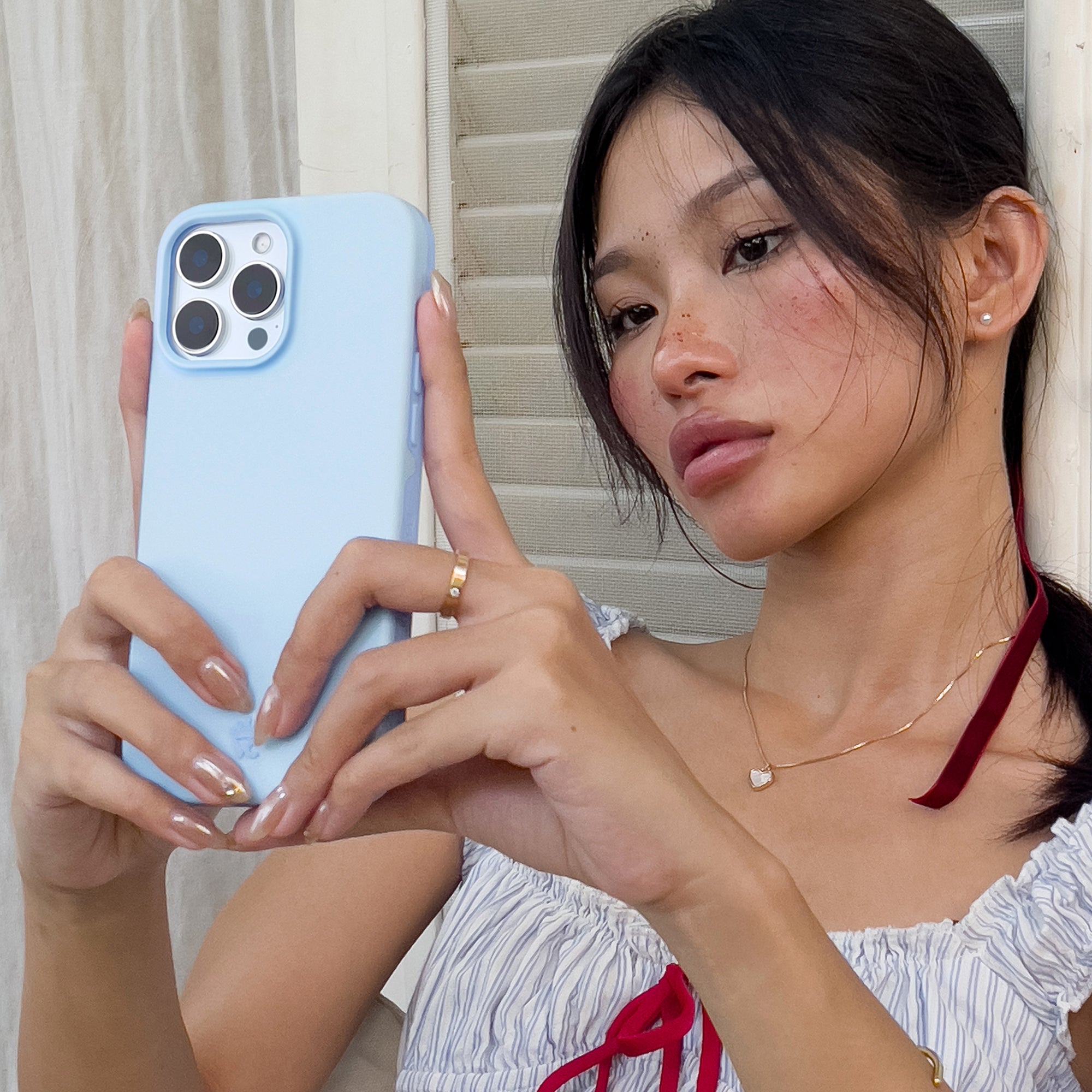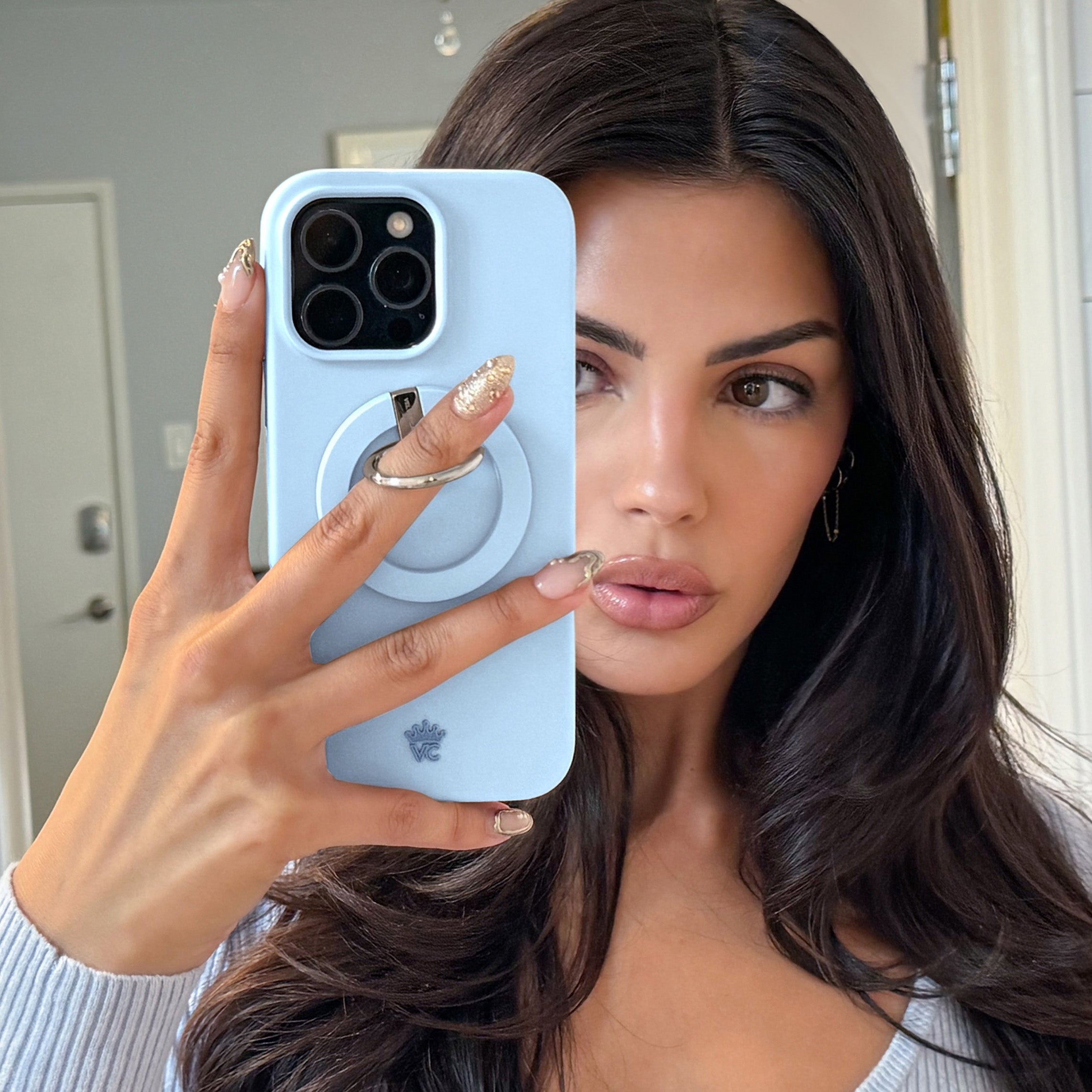 Trend alert! This powder blue MagSafe case features a new SatinShield™️ finish for a smooth in-hand feel and added dust protection.