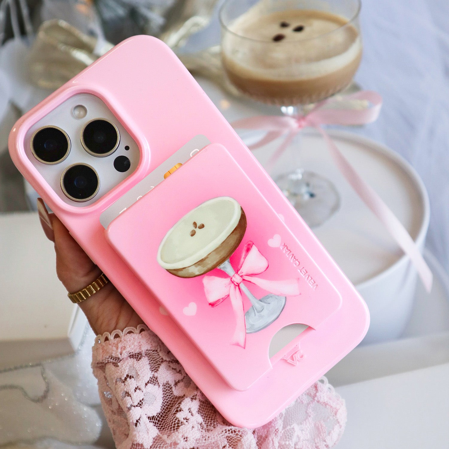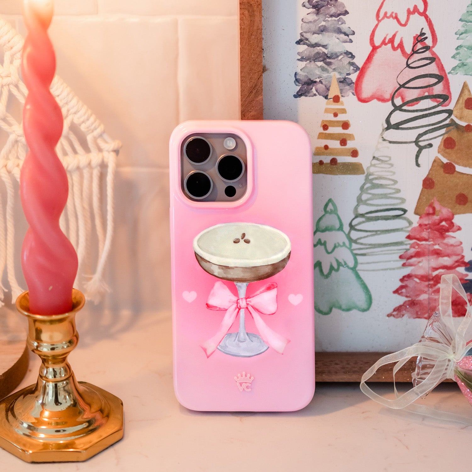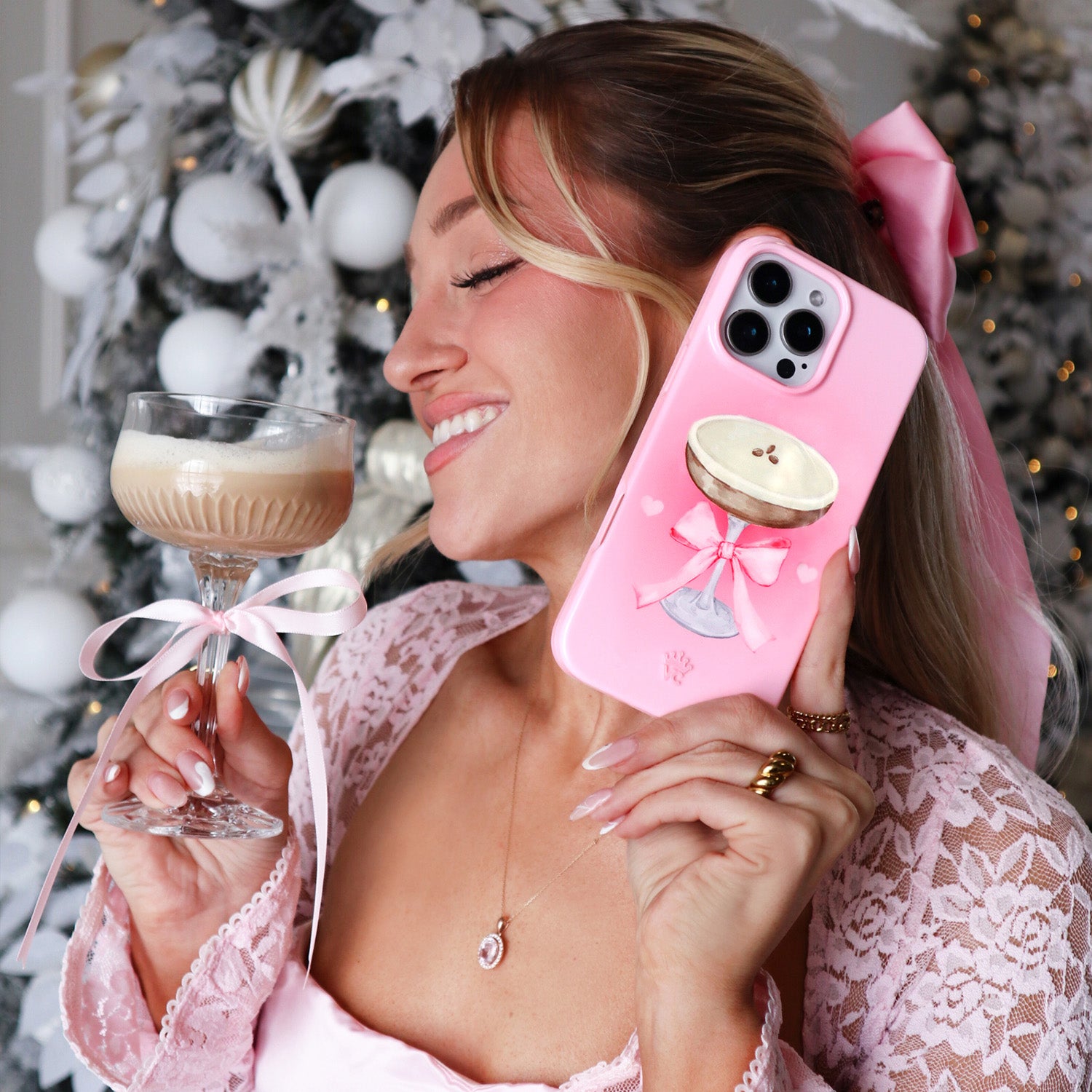 Happy Holidays! This MagSafe case features an adorable espresso martini with a pink bow tied around the stem and hearts throughout all on a light bubblegum pink base. This case is part of our Limited Edition Christmasand Hanukkah Collection.