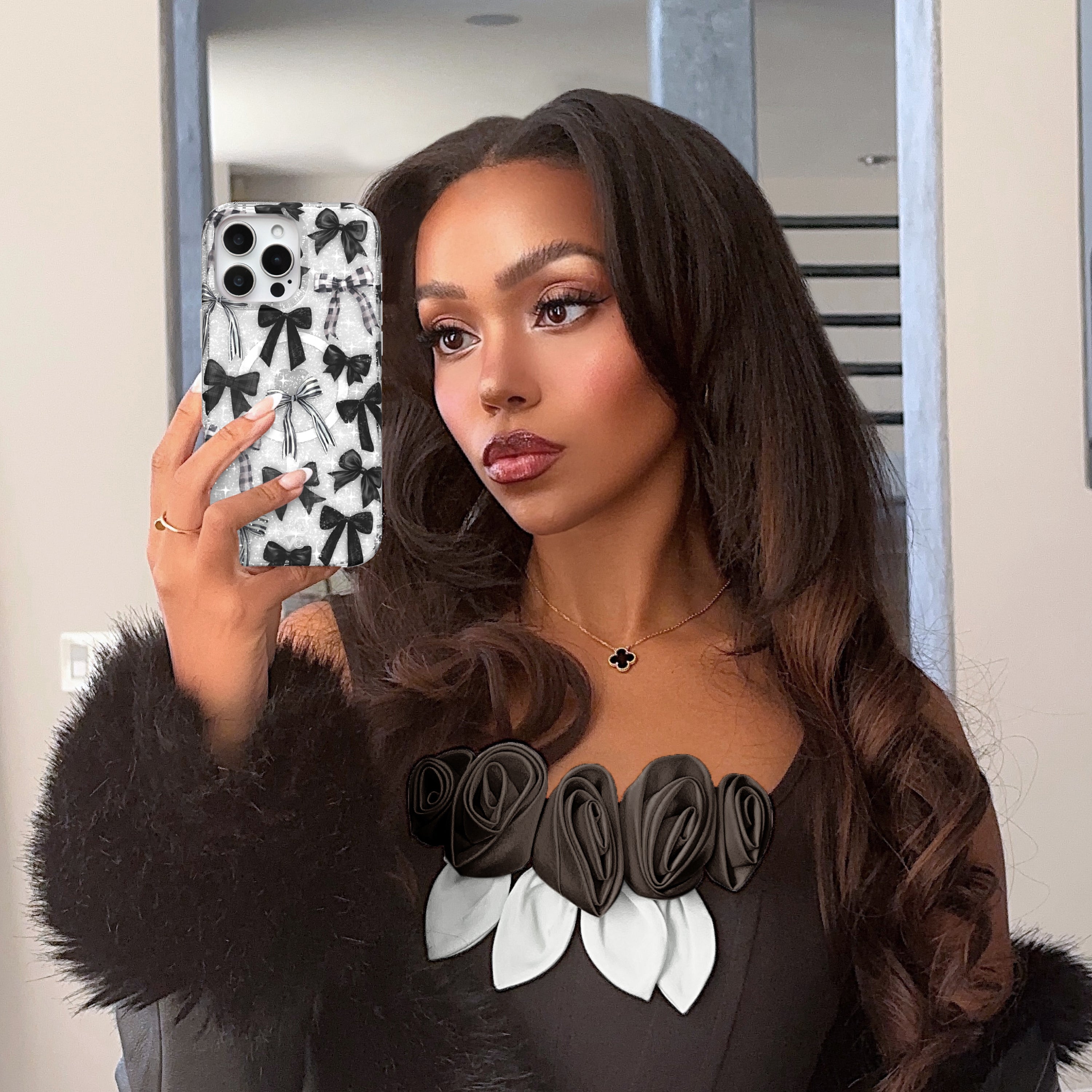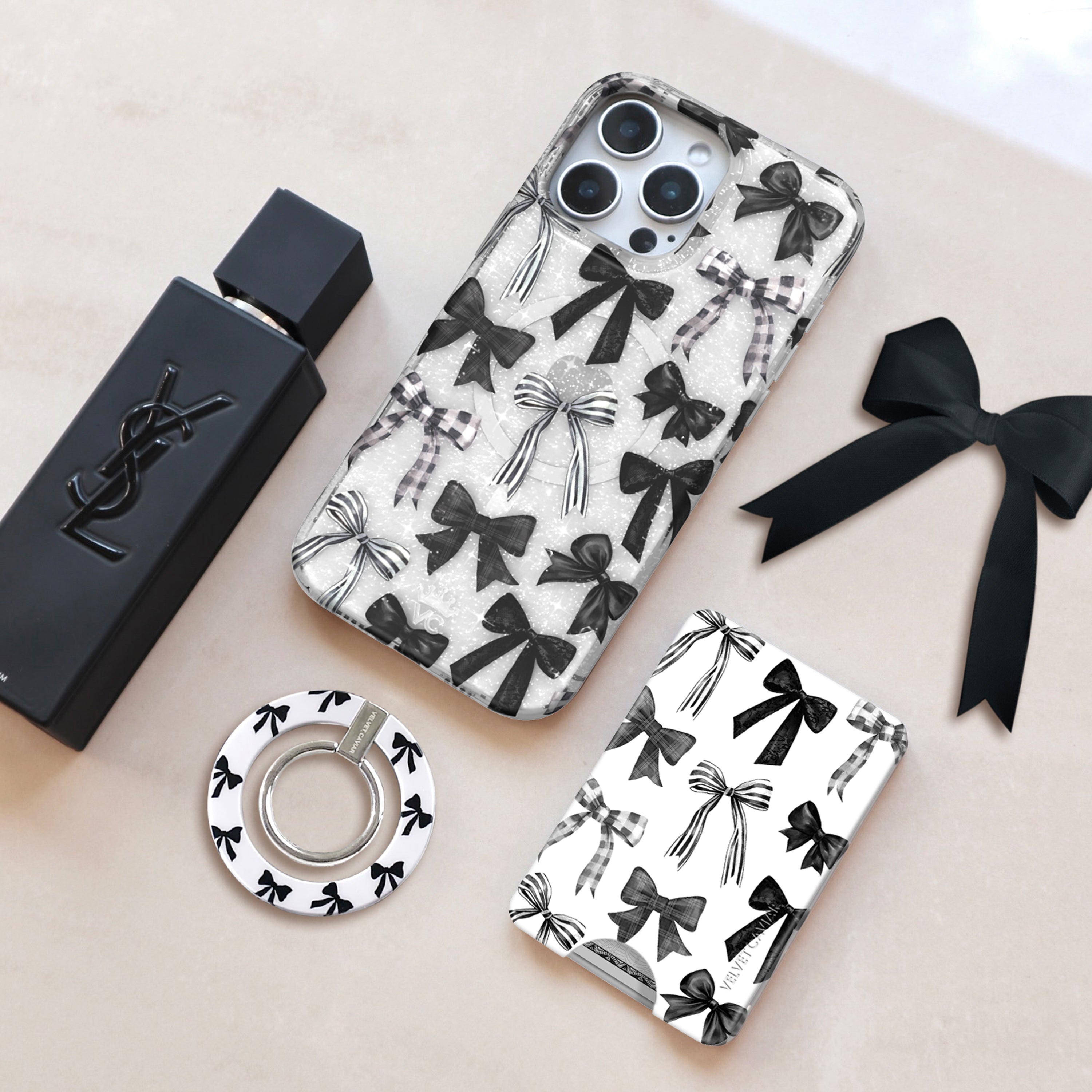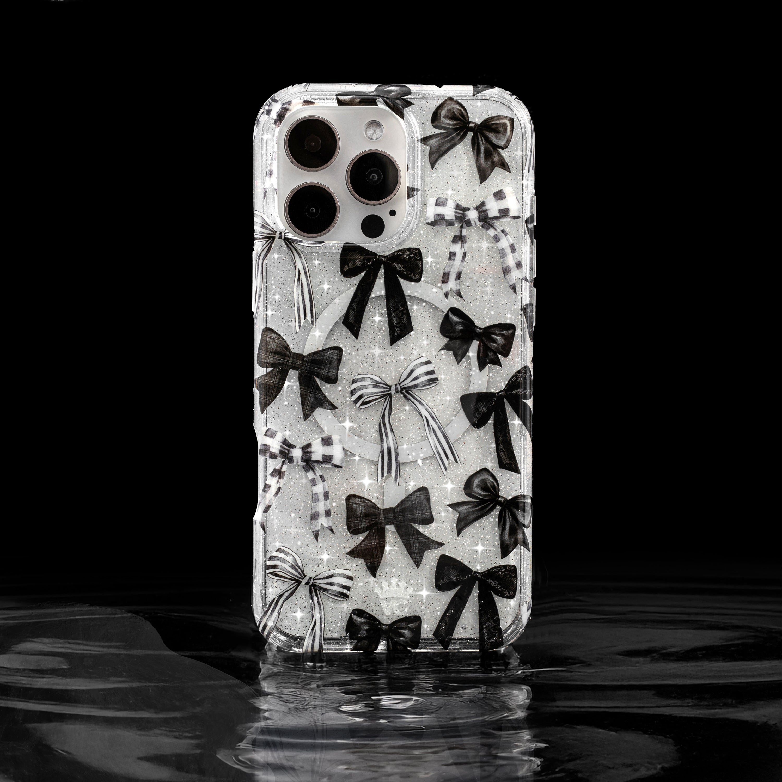 Happy Halloween! This spooky MagSafe clear case features gothic ribbon bows in black, stripe, and gingham patterns.