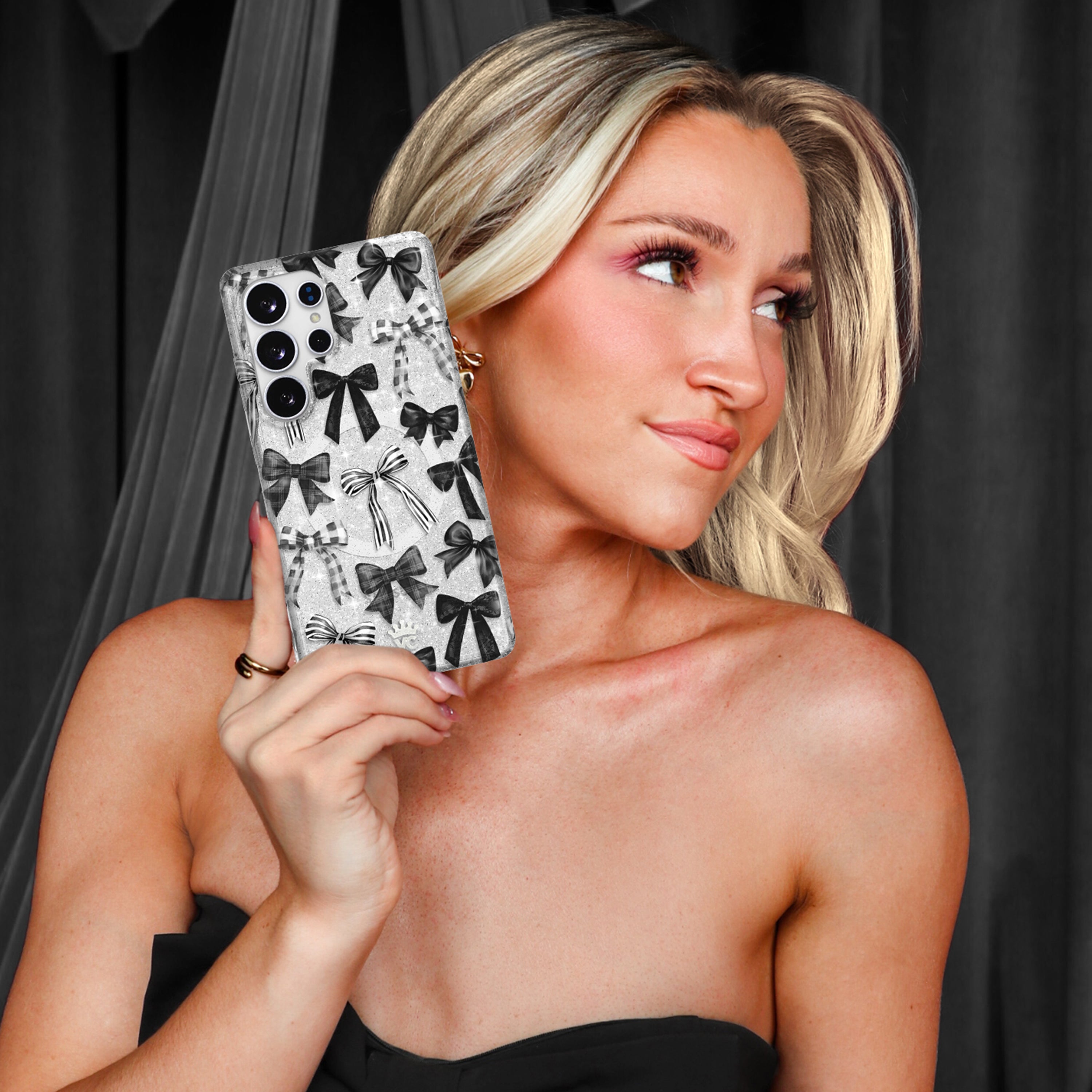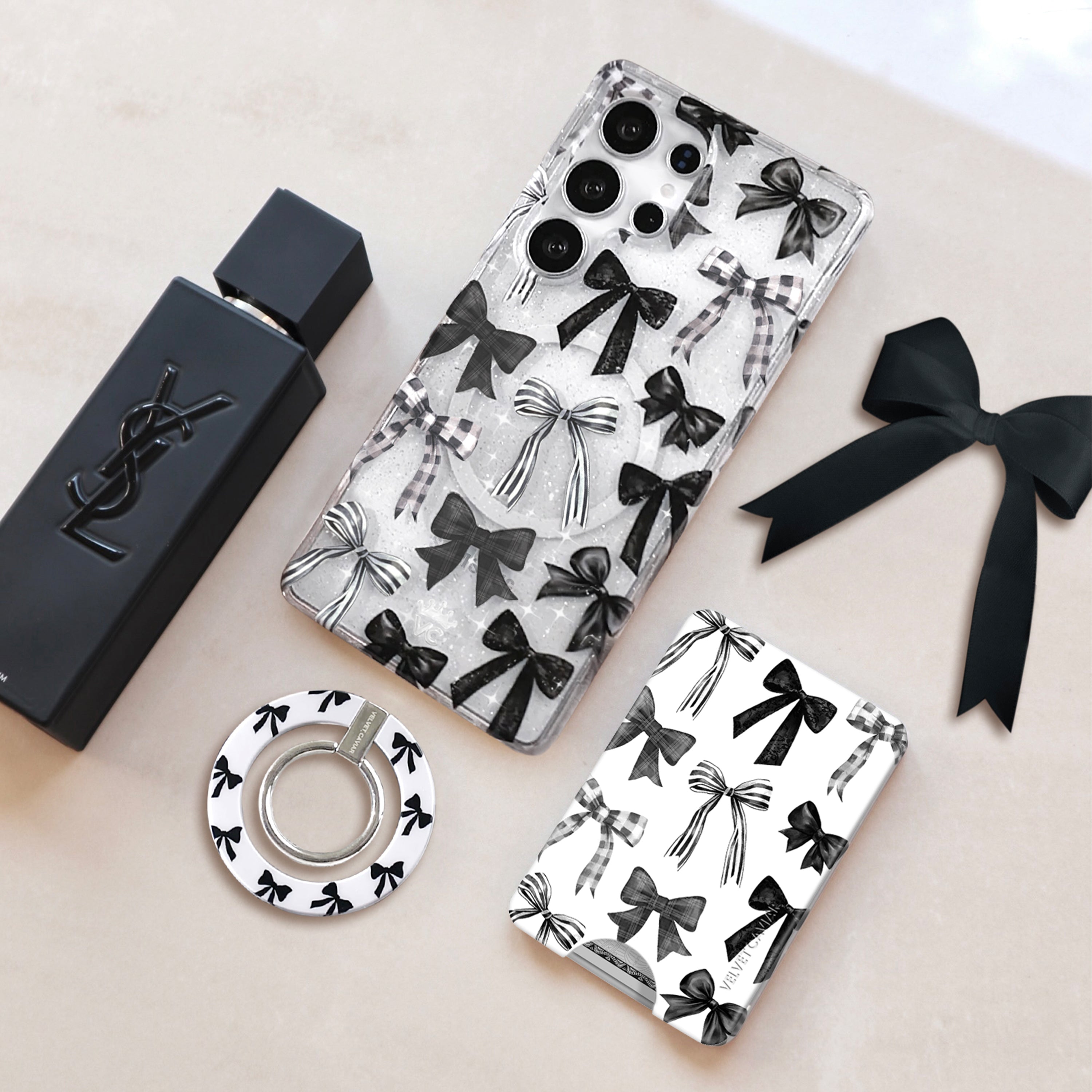 Happy Halloween! This spooky protective clear case features gothic ribbon bows in black, stripe, and gingham patterns.