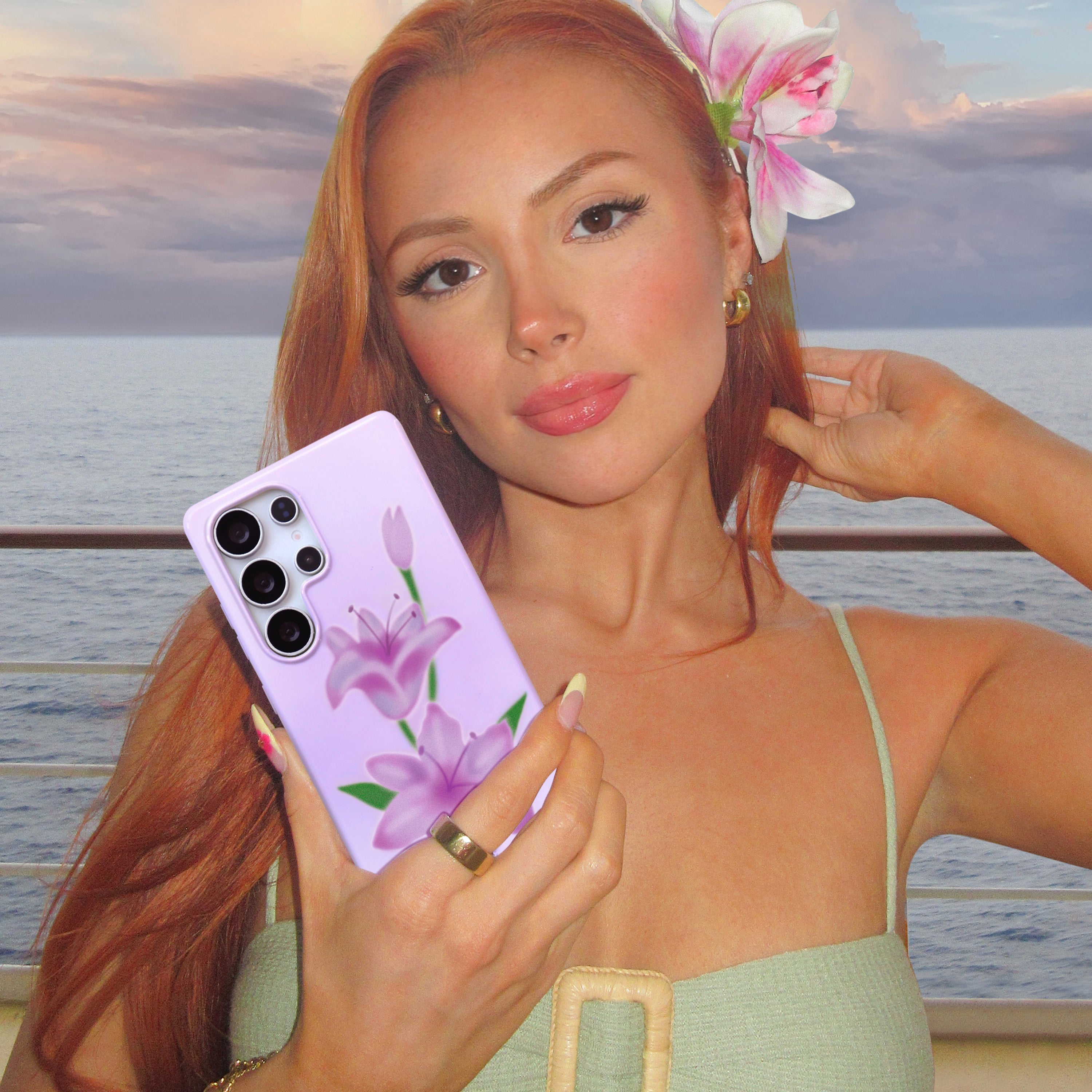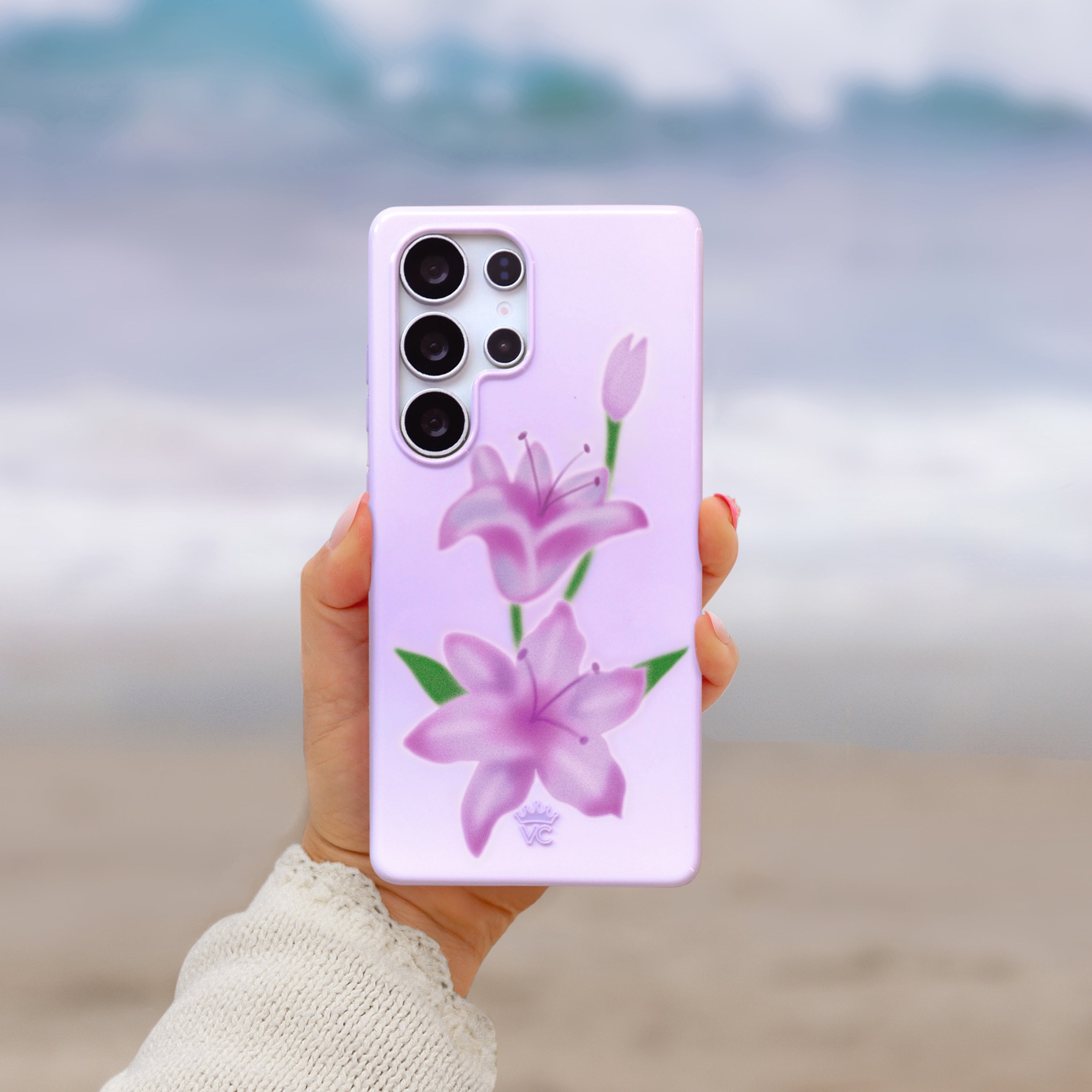 Under your spell! This protective case features a soft focus blooming lily floral on a pastel lilac base.