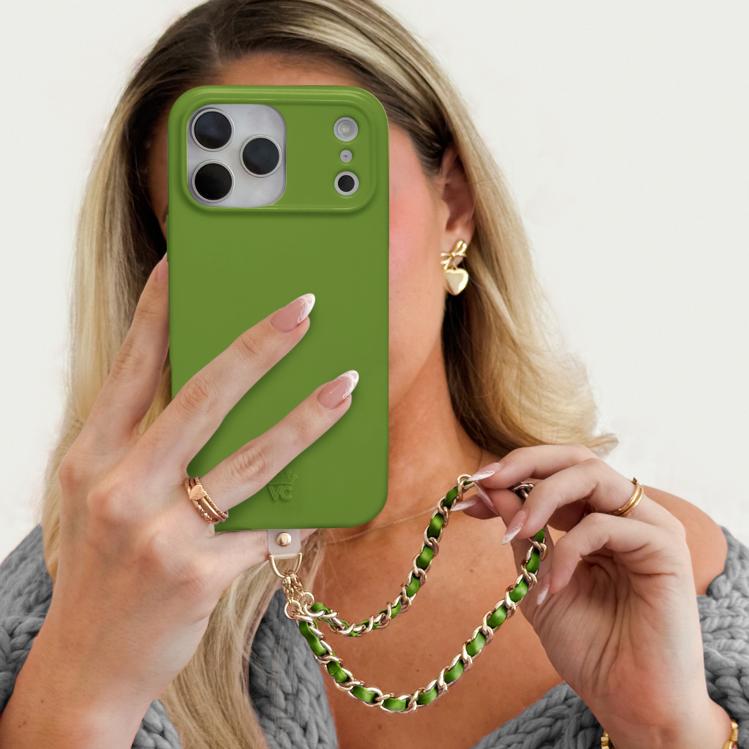 Metallic Green Leather Chain Phone Charm