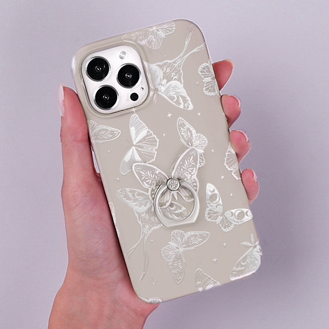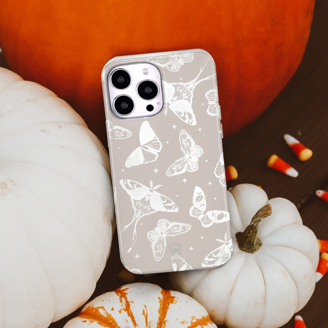 Goodnight Moon! This protective case features a matte base with glossy white moths to get you in the Halloween spirit.