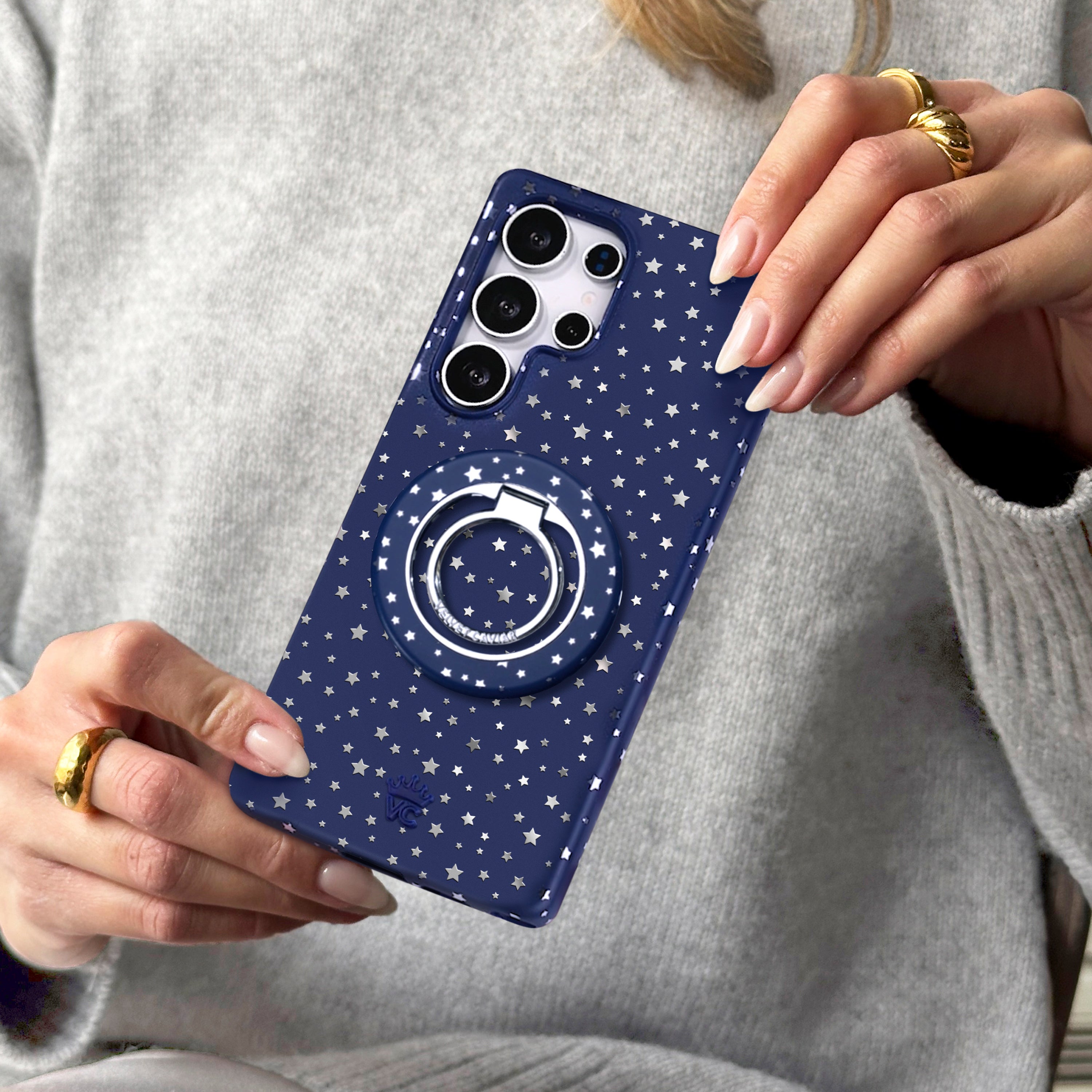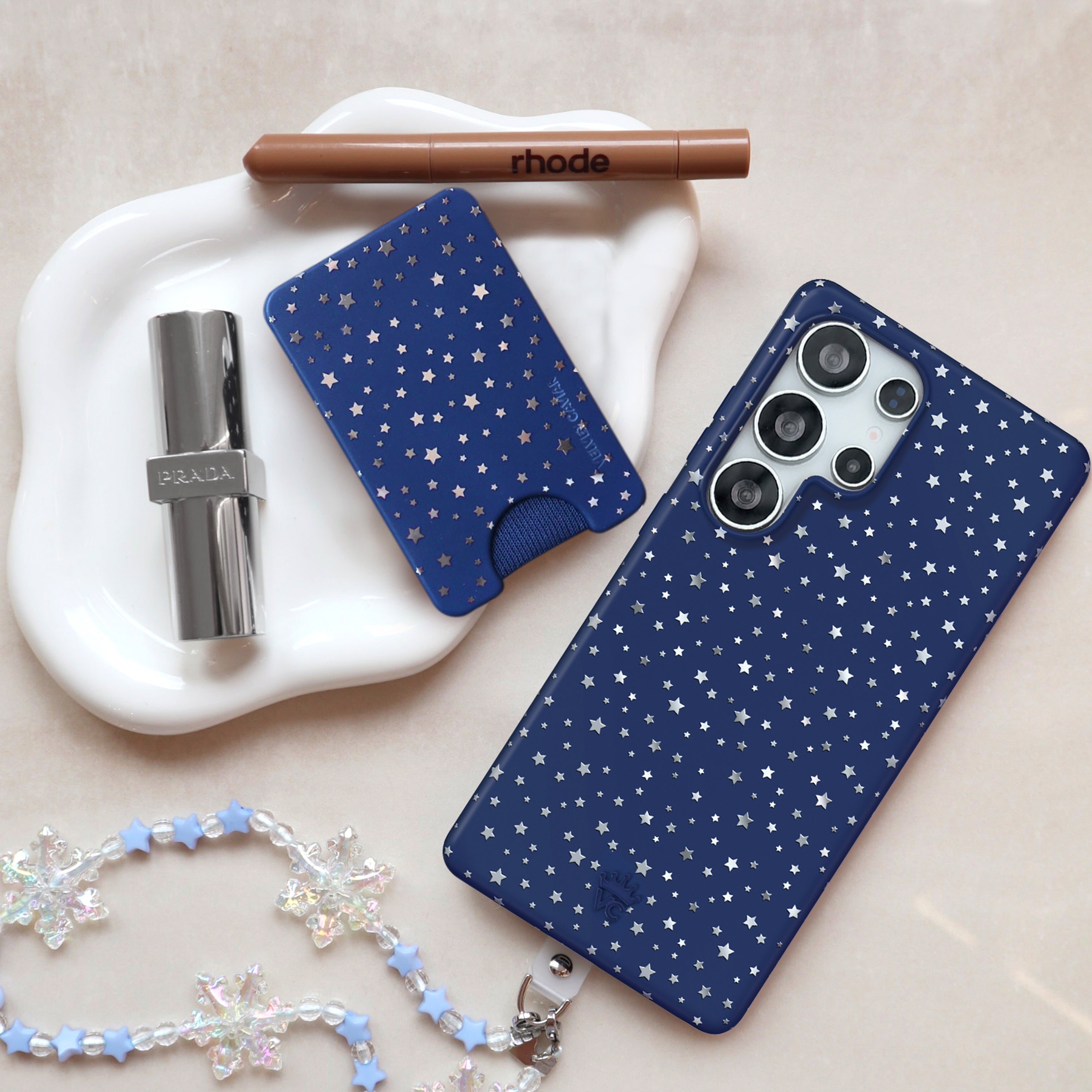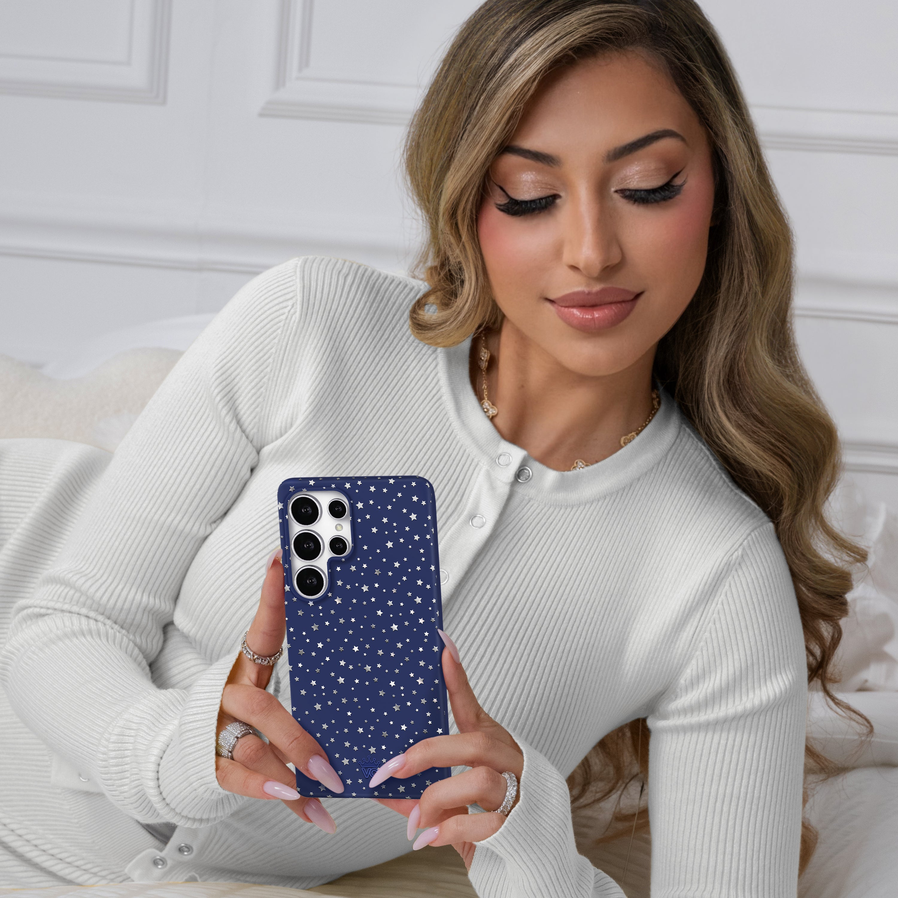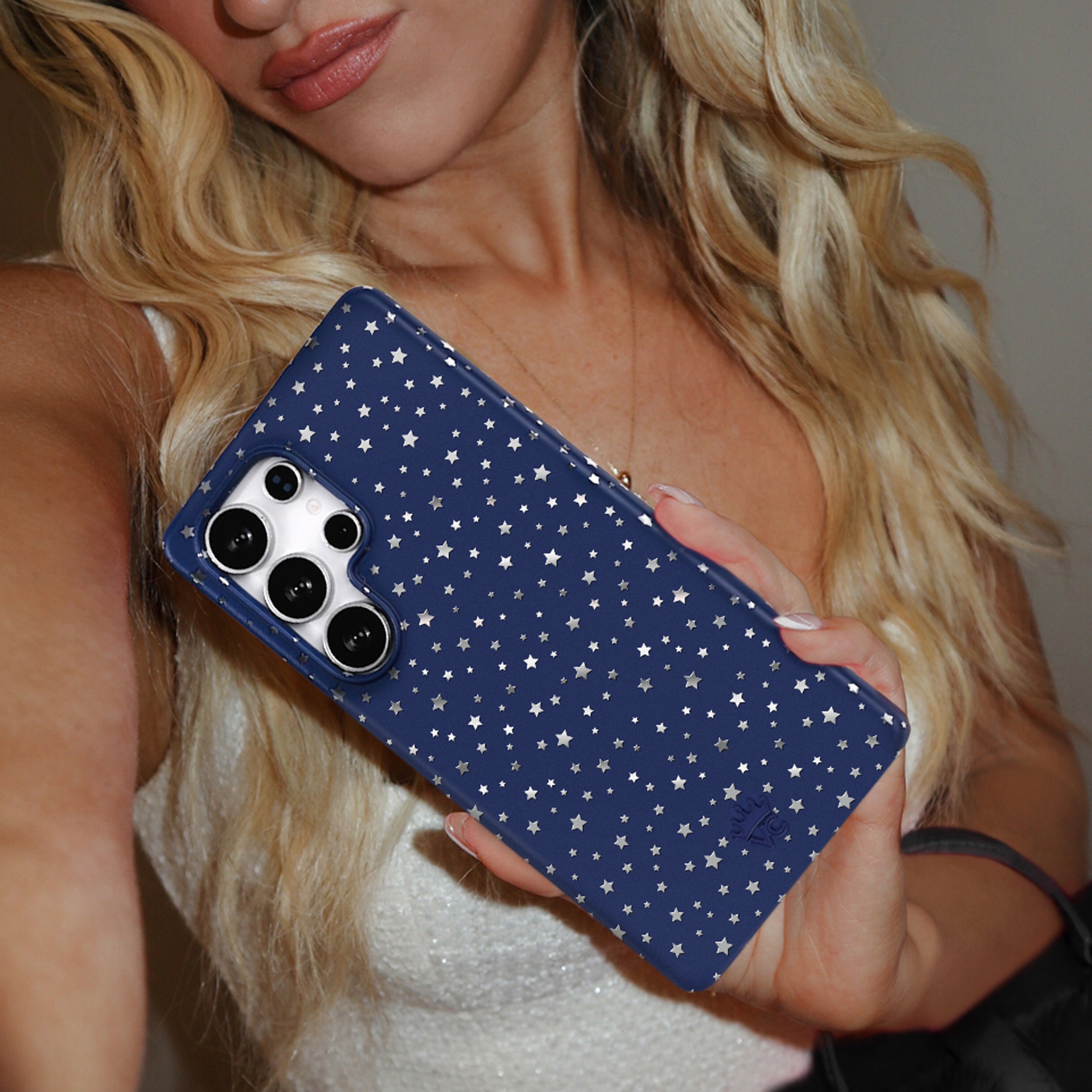 Happy Holidays! This protective case features silver chrome stars scattered across a matte deep navy blue base. This case is part of our Limited Edition Holiday Dreams collection celebrating Christmas and Hanukkah.