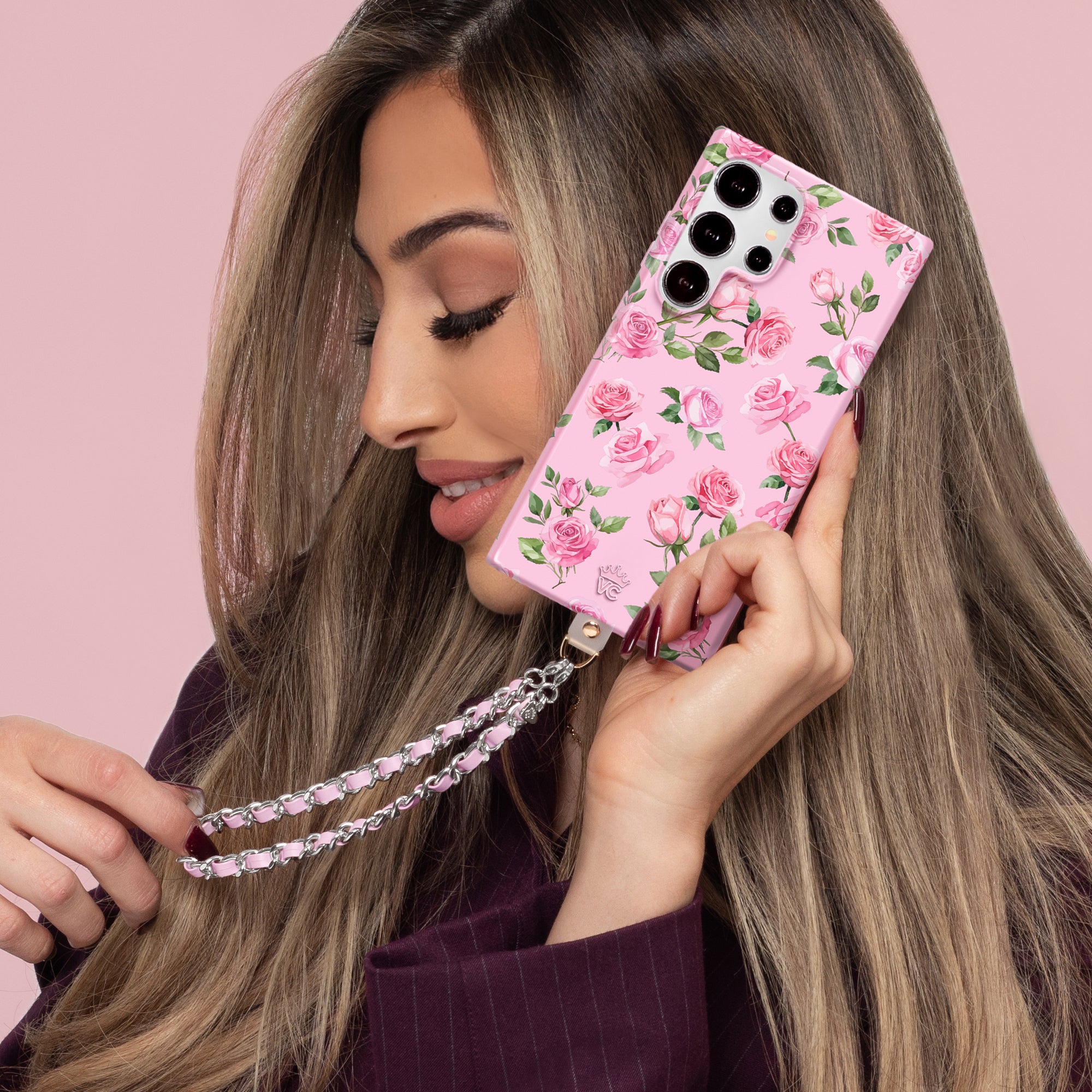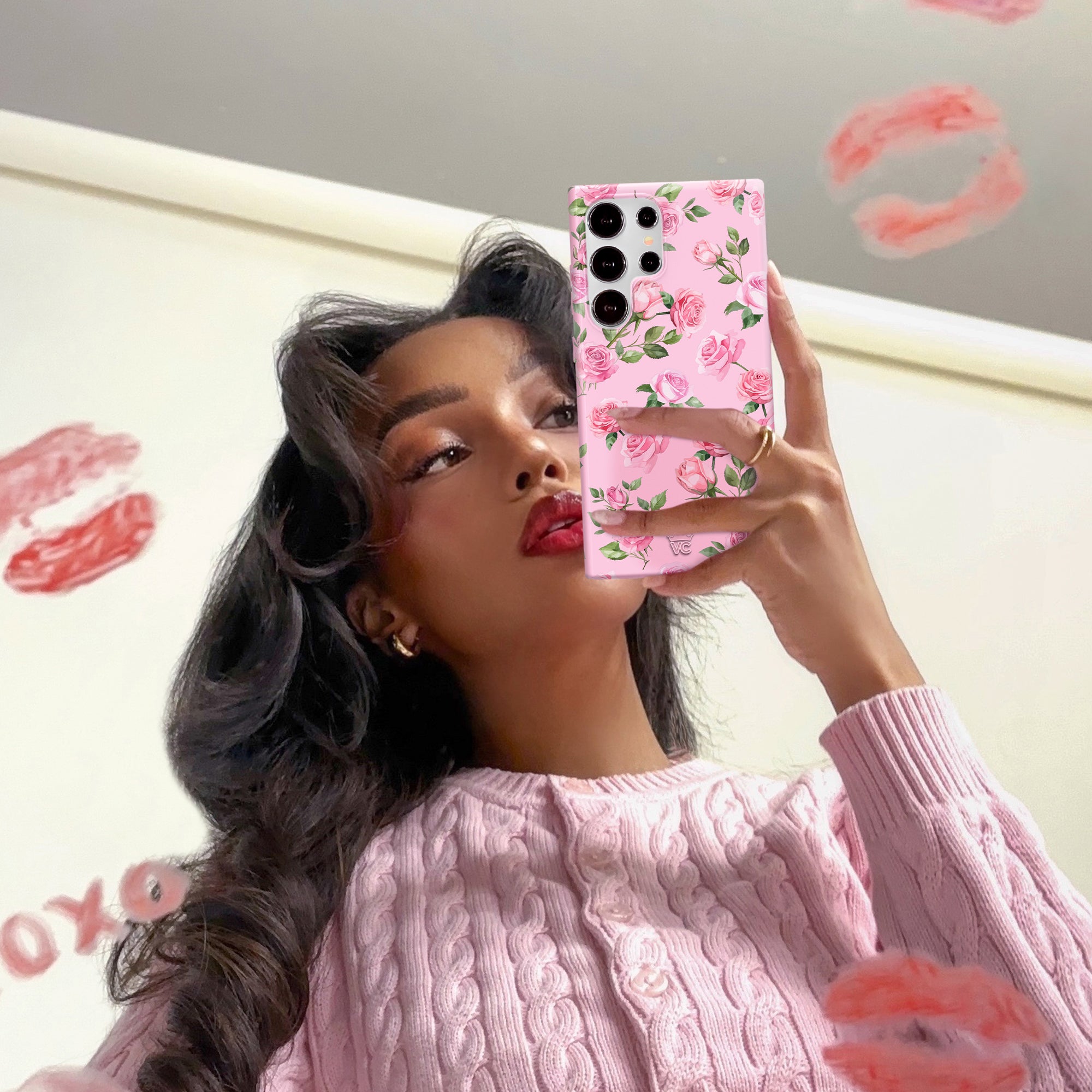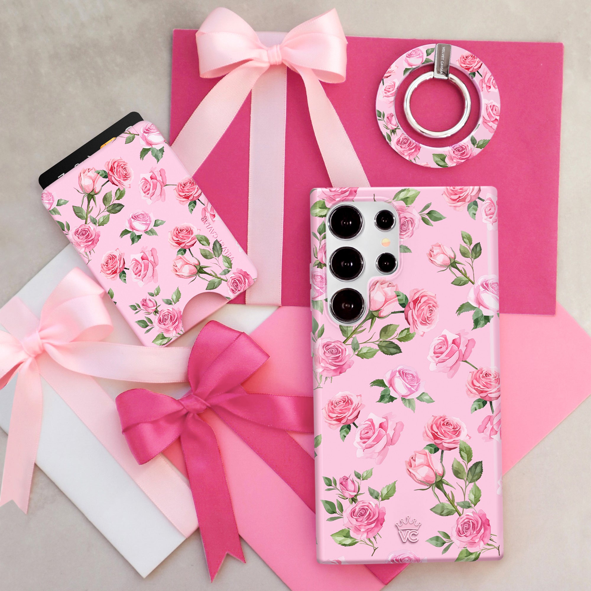 La Vie En Rose! This protective case features an array of precious pink roses on a glossy bubblegum pink base.