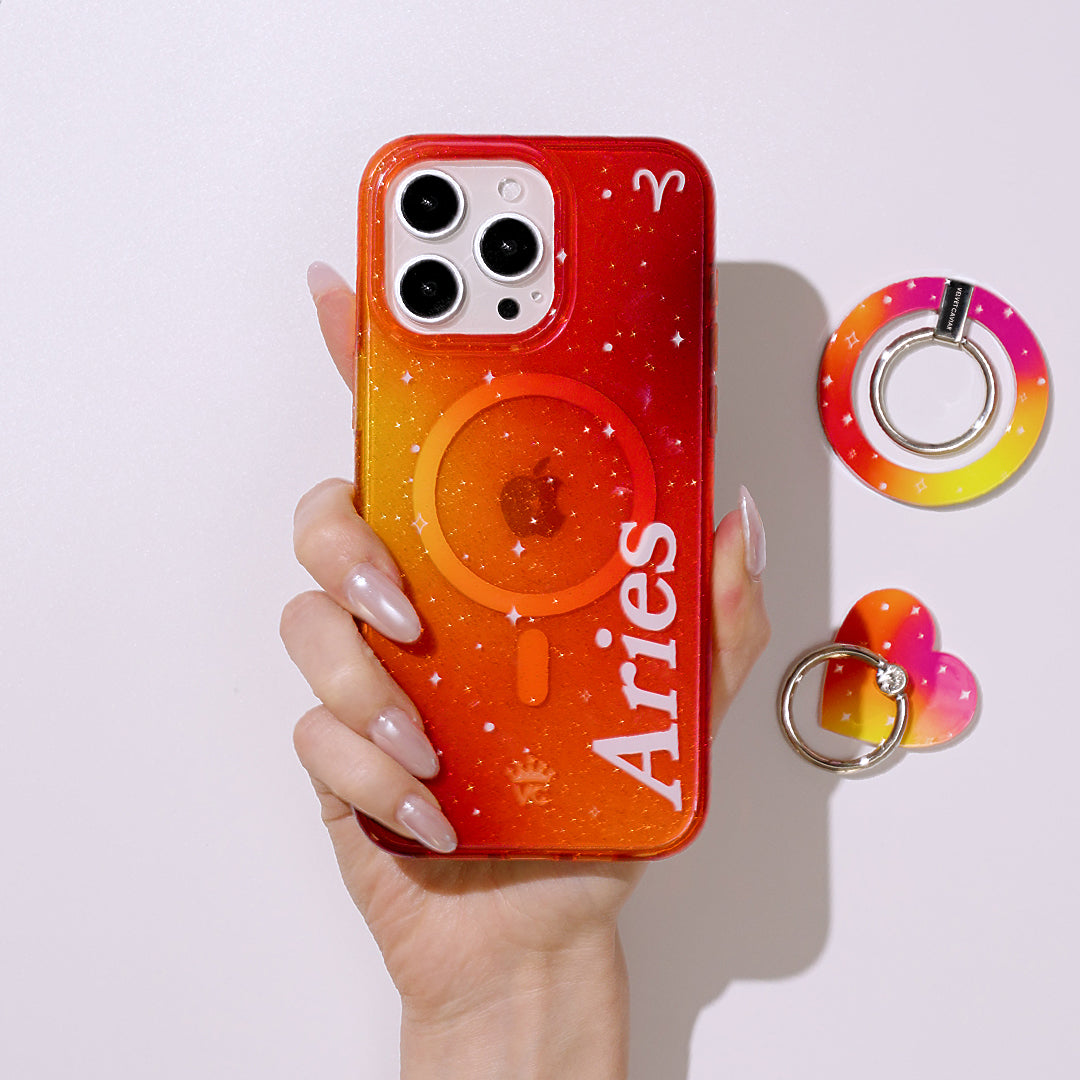 Aries are Loving, Independent, and Strong! This MagSafe case comes in a fiery colorway inspired by the unique elements of Aries with silver glitter sprinkled into the base and bumper. This case is part of our Zodiac Collection in collaboration with Sanctuary™