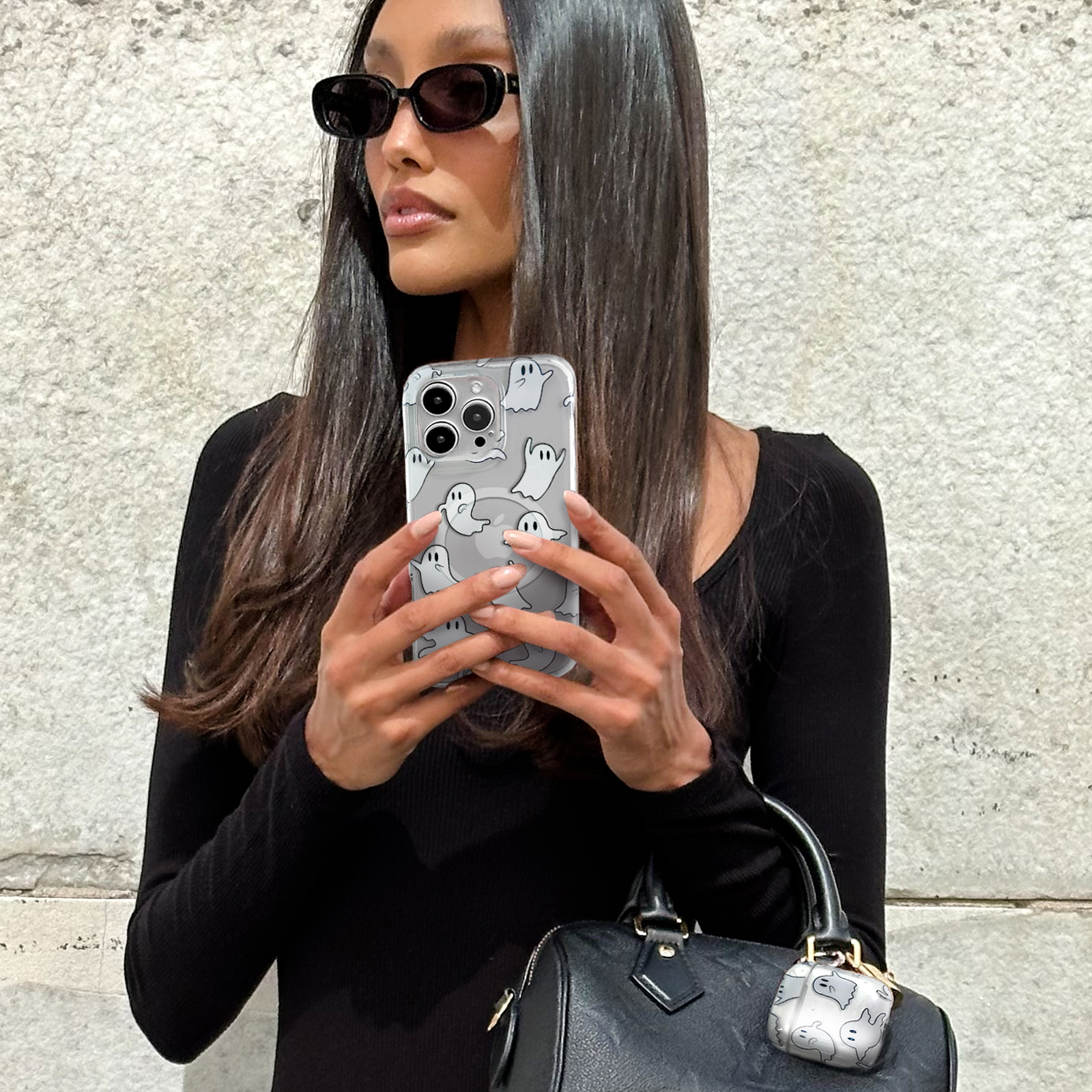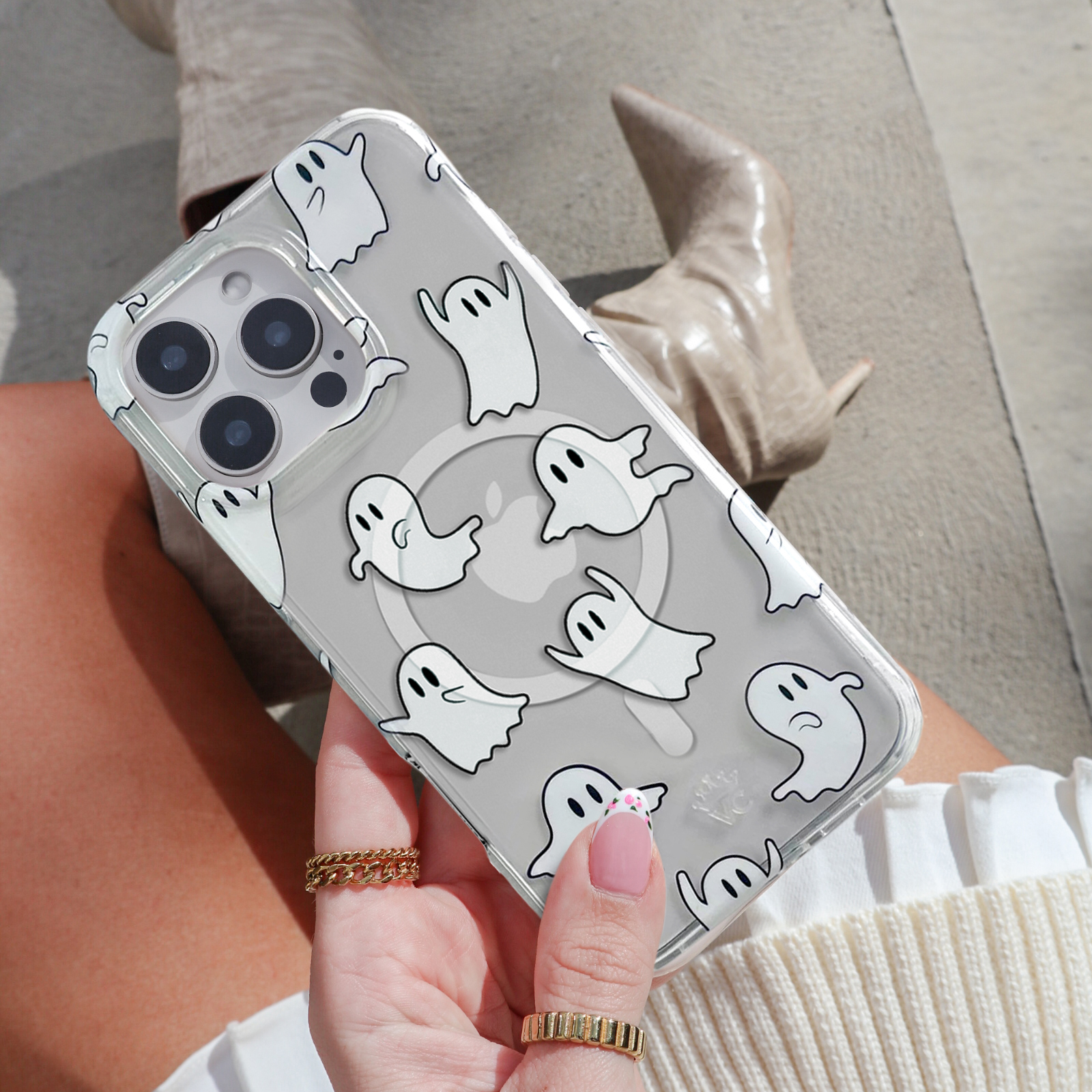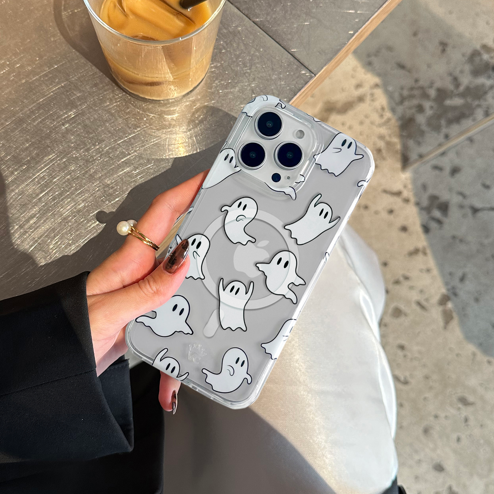 BOO! This protective clear case features cute friendly ghosts throughout. Happy Halloween!