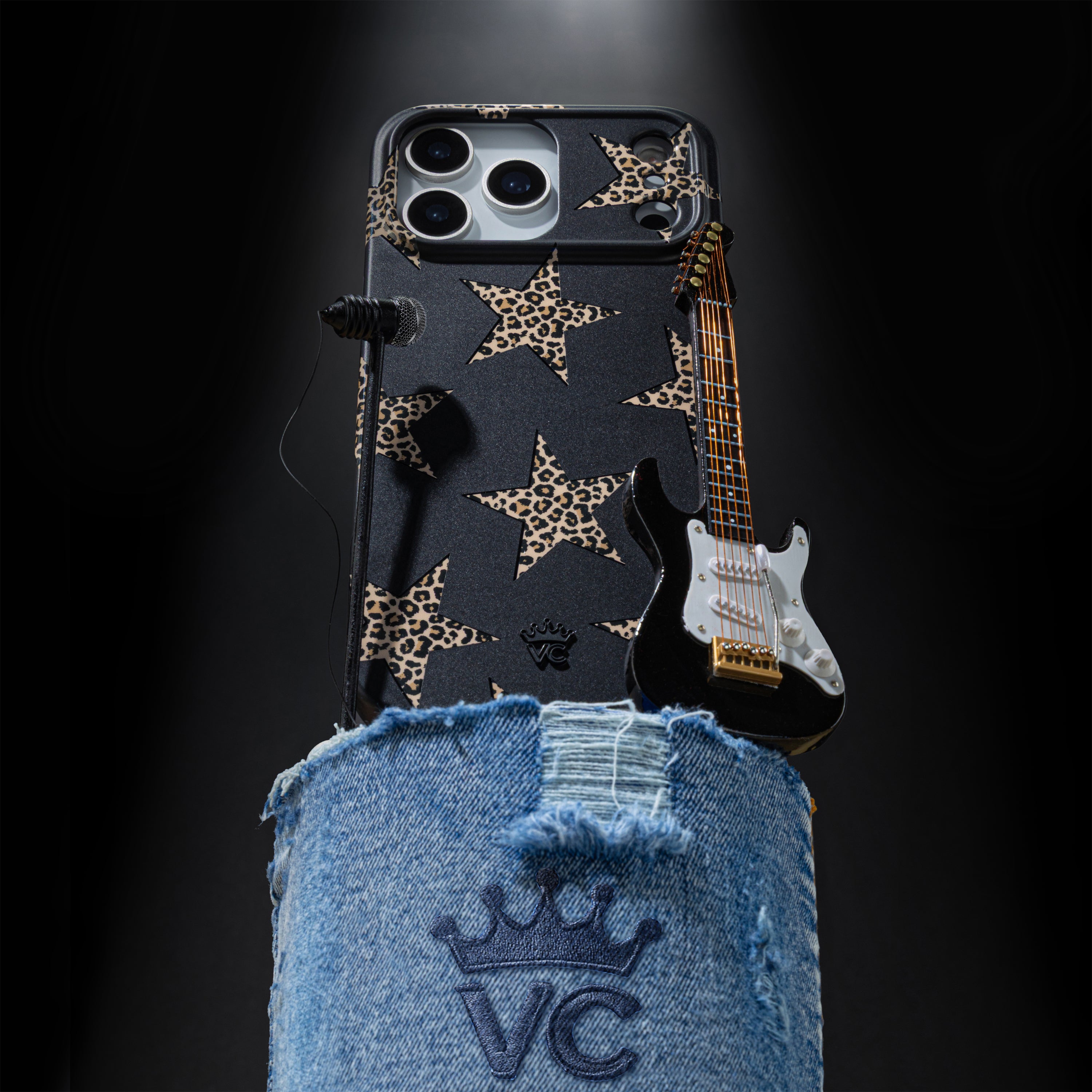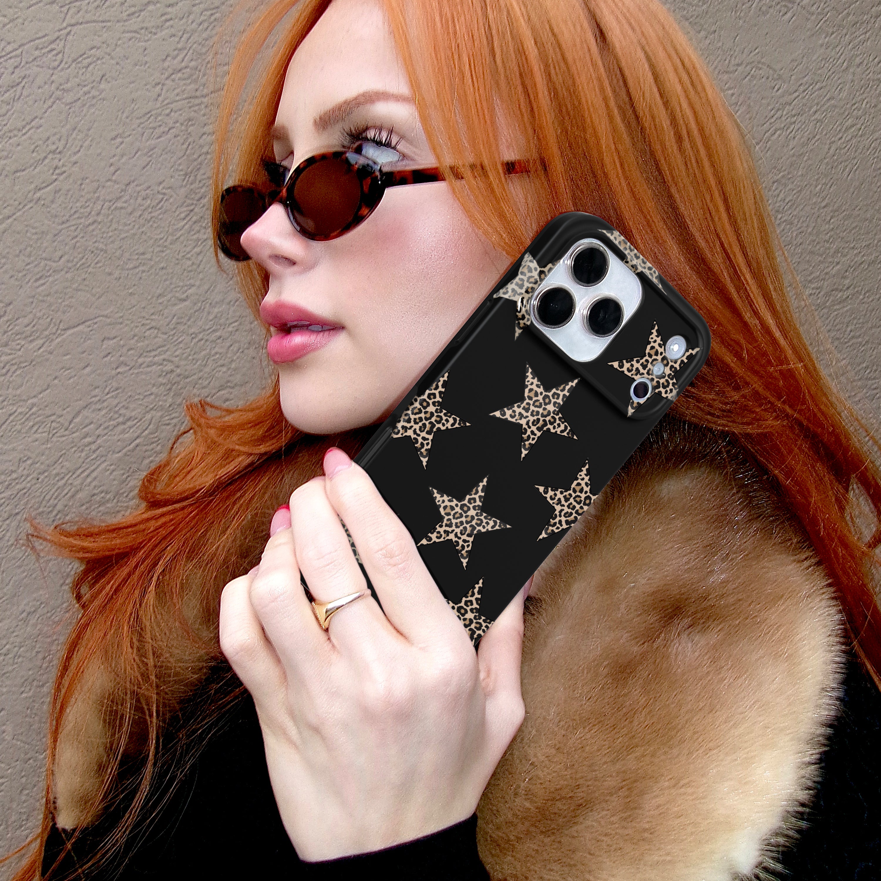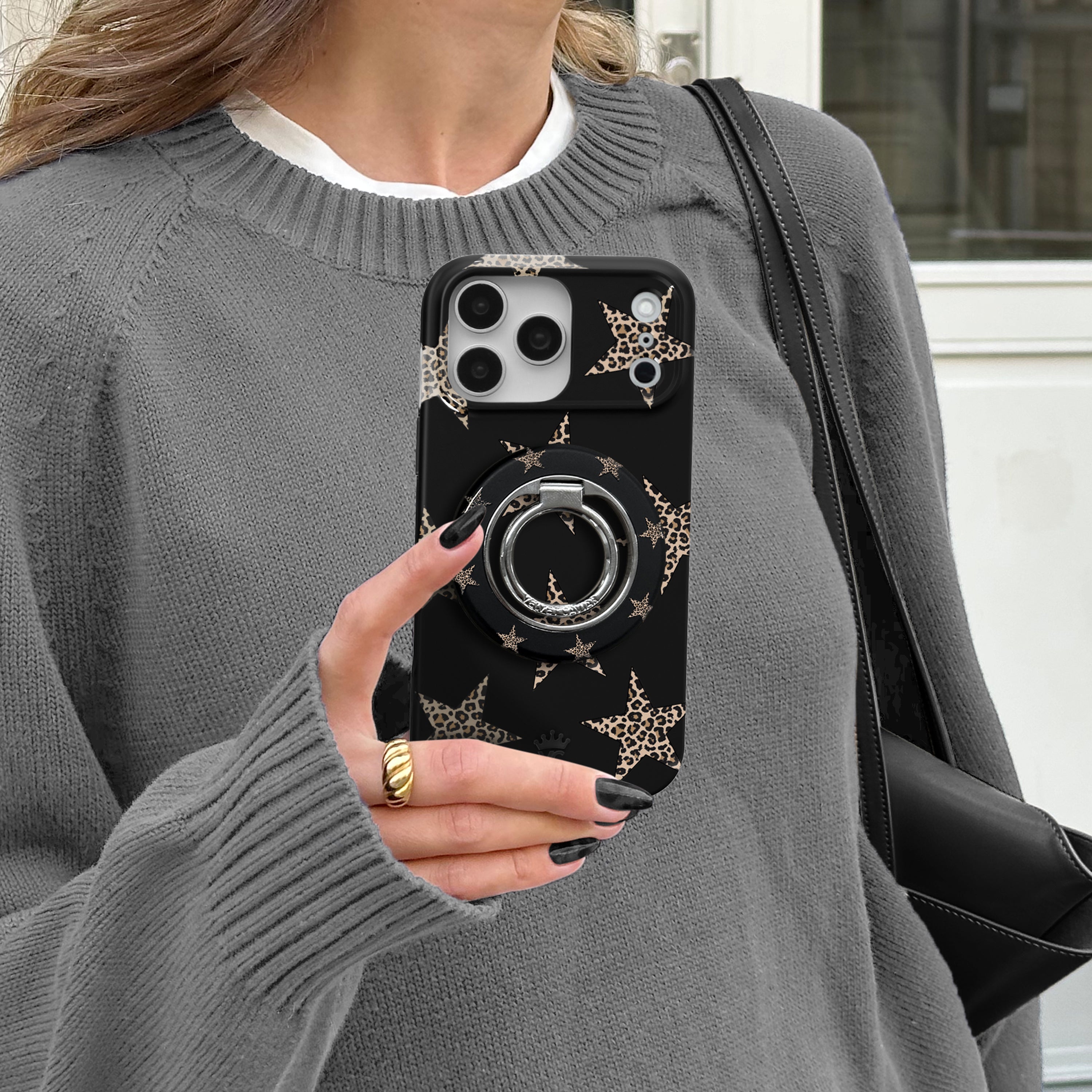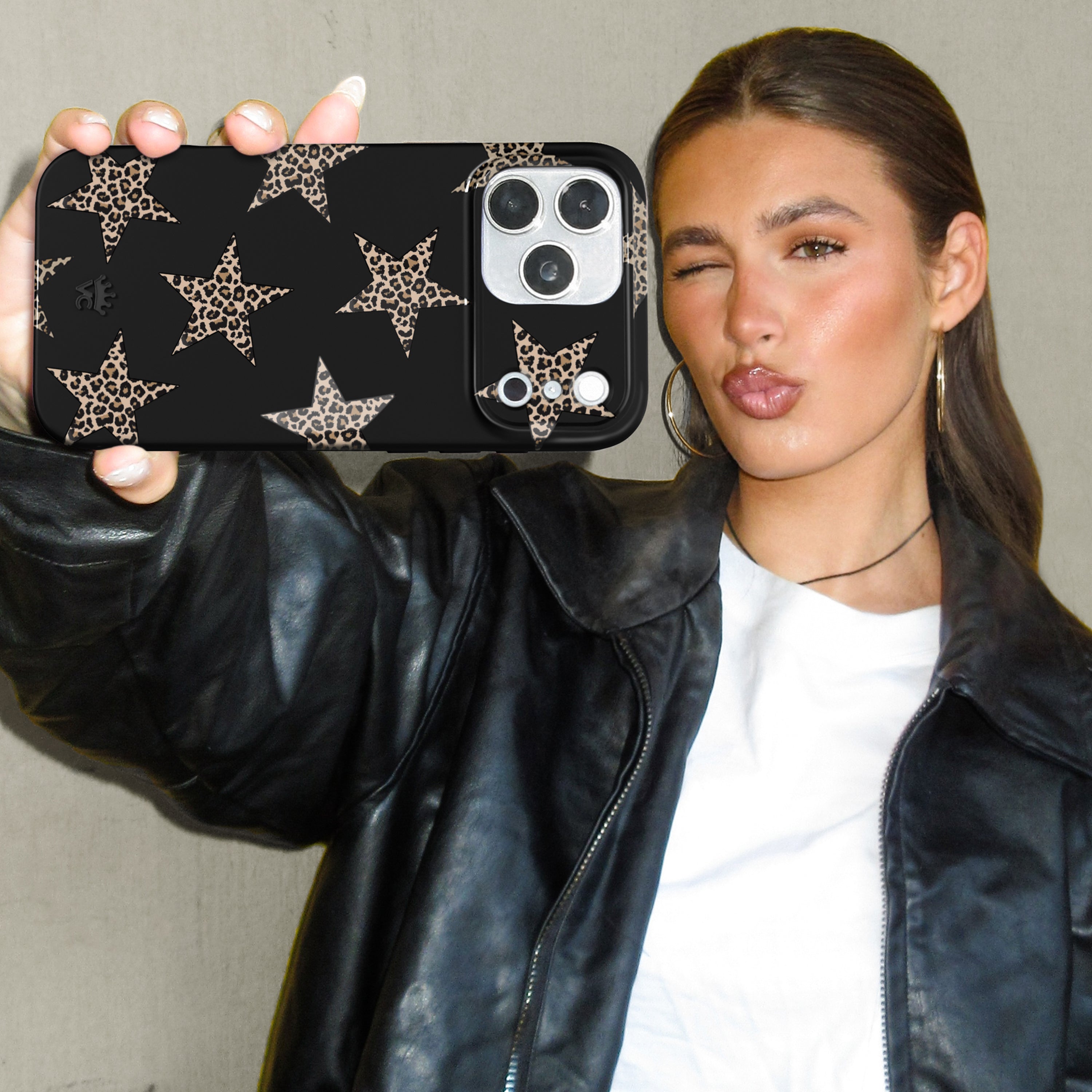 Add a little edge! This MagSafe case features leopard print stars on a matte black base.