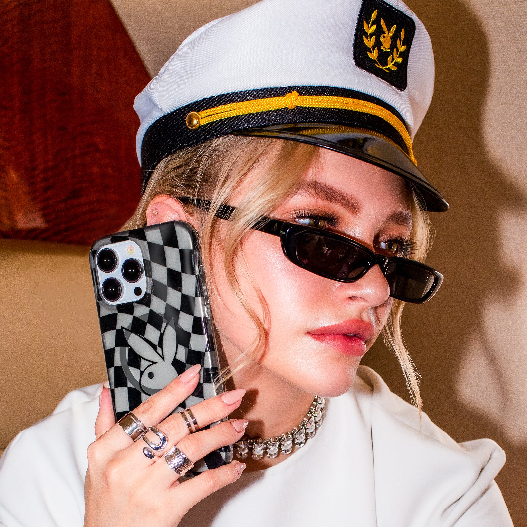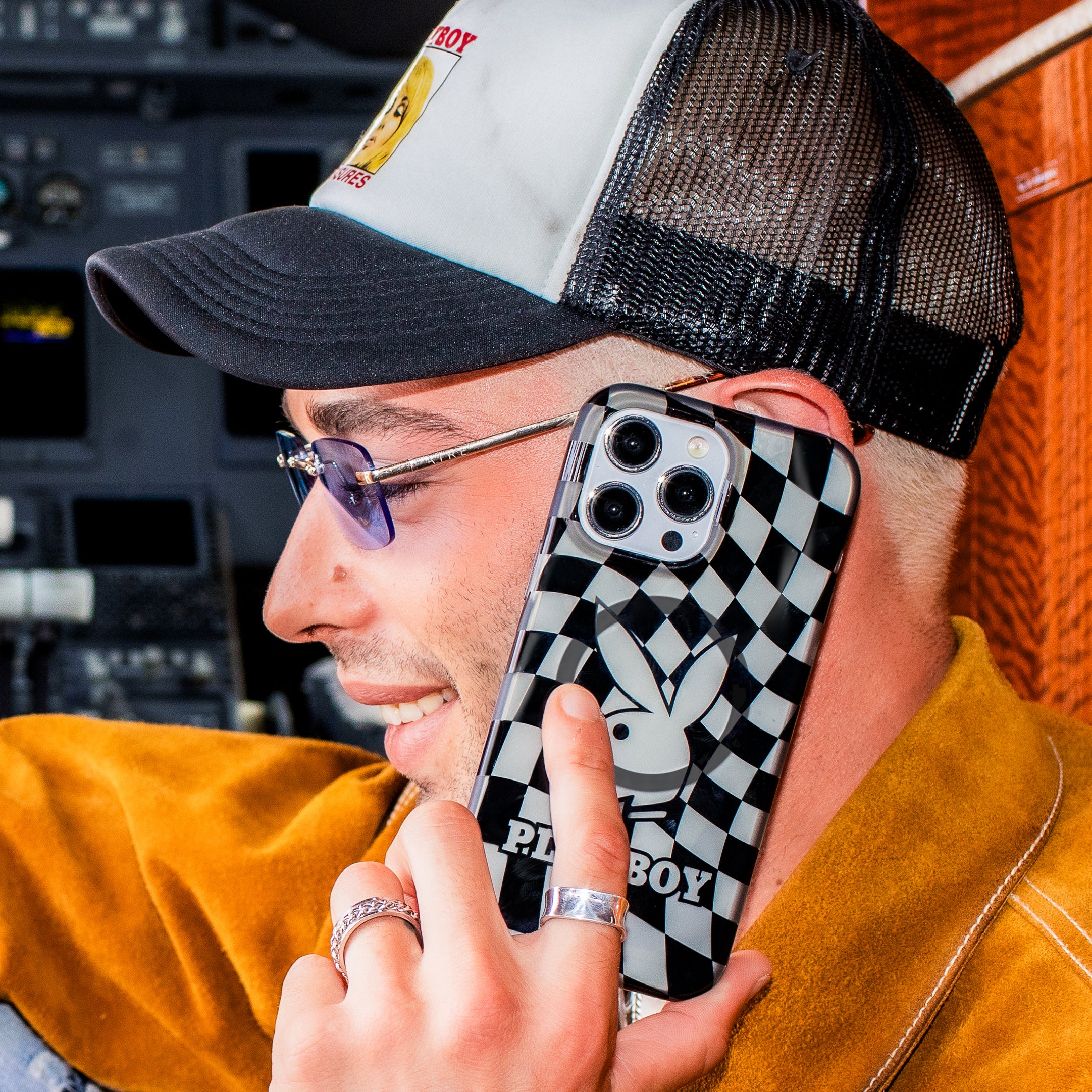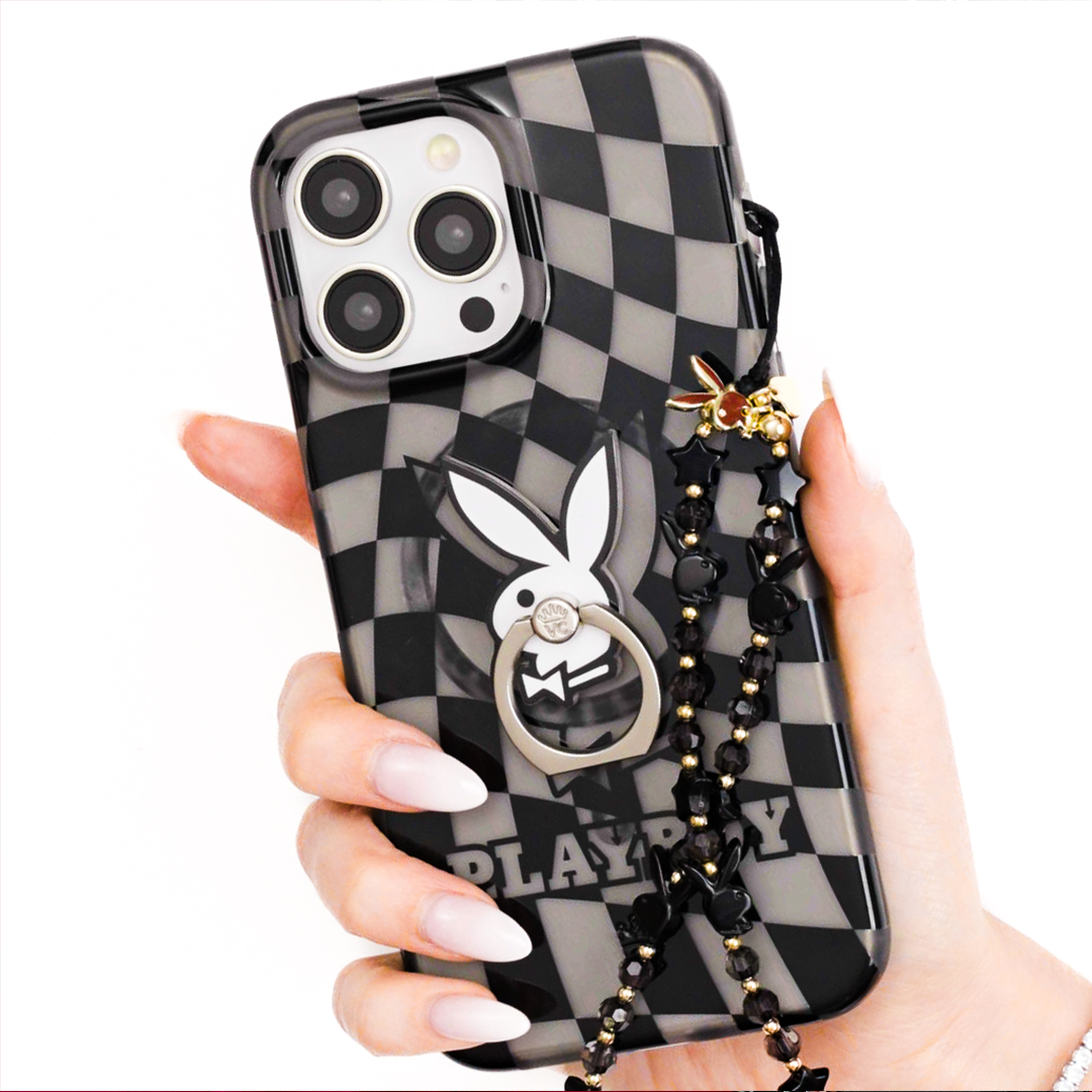 Life, liberty, and the pursuit of pleasure... That's Playboy! This unisex case has a clear charcoal base with glossy black checkers and the iconic Playboy Bunny front and center!