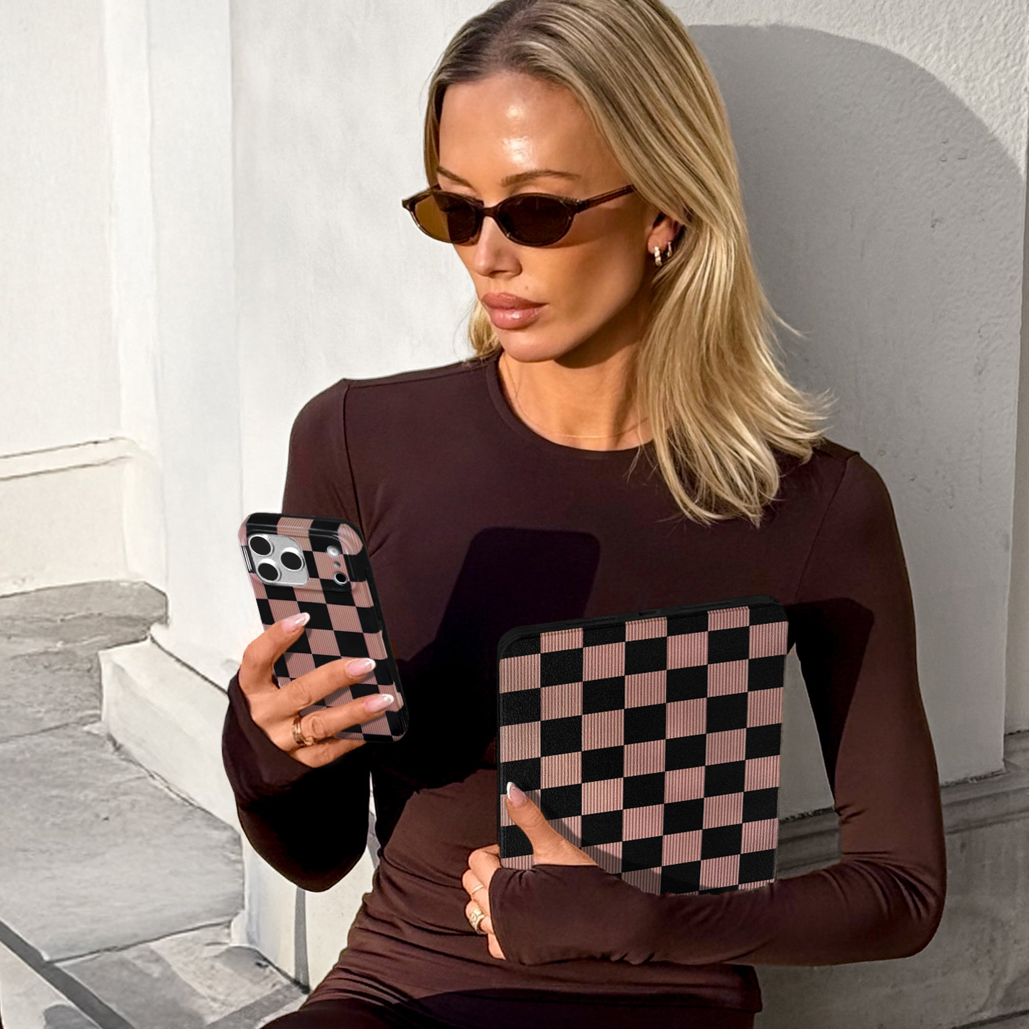 Mocha Vibe Checkered iPad Case