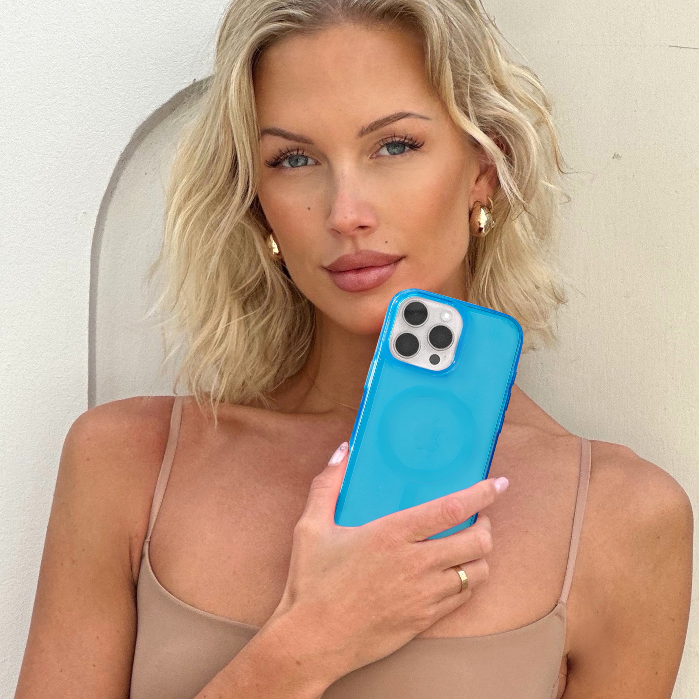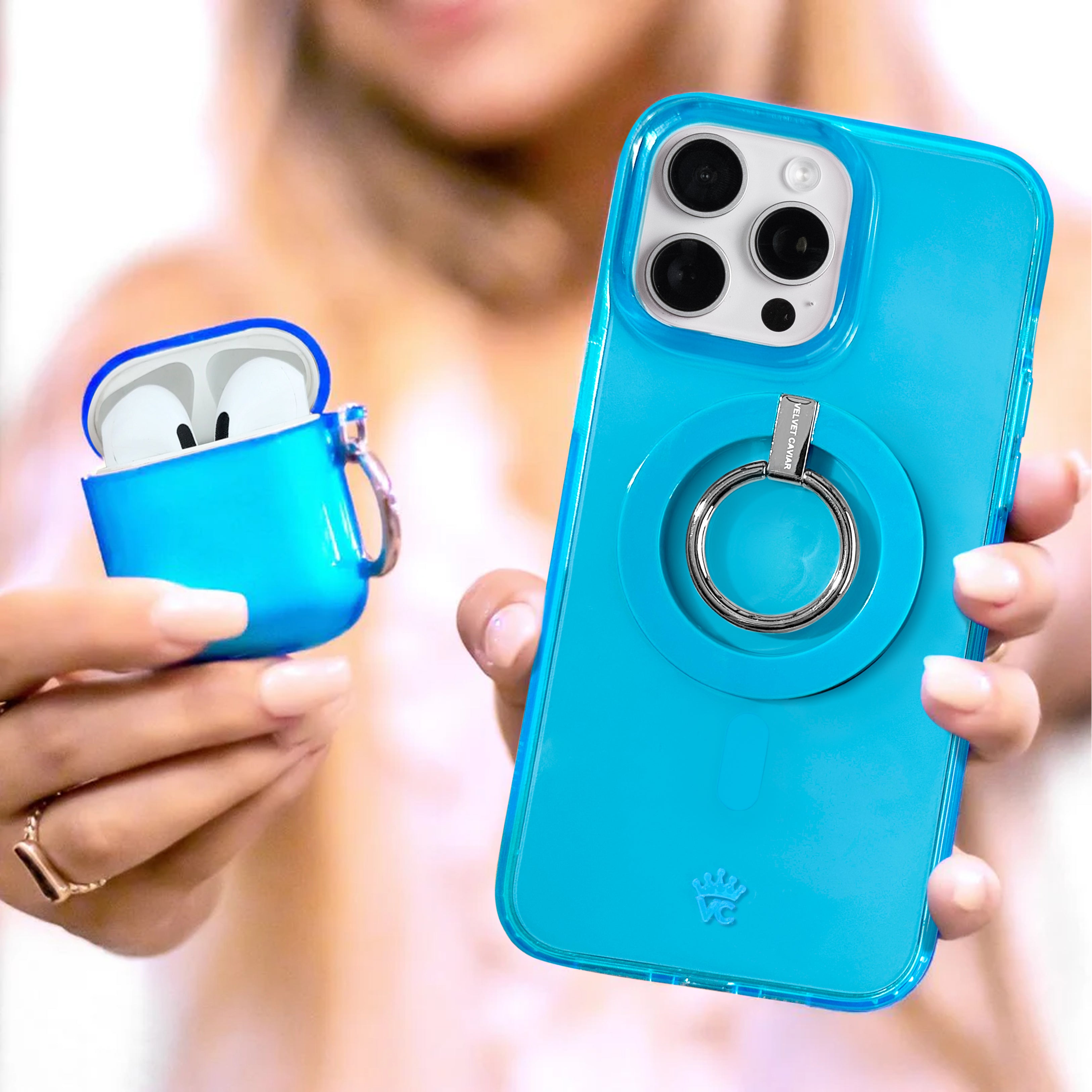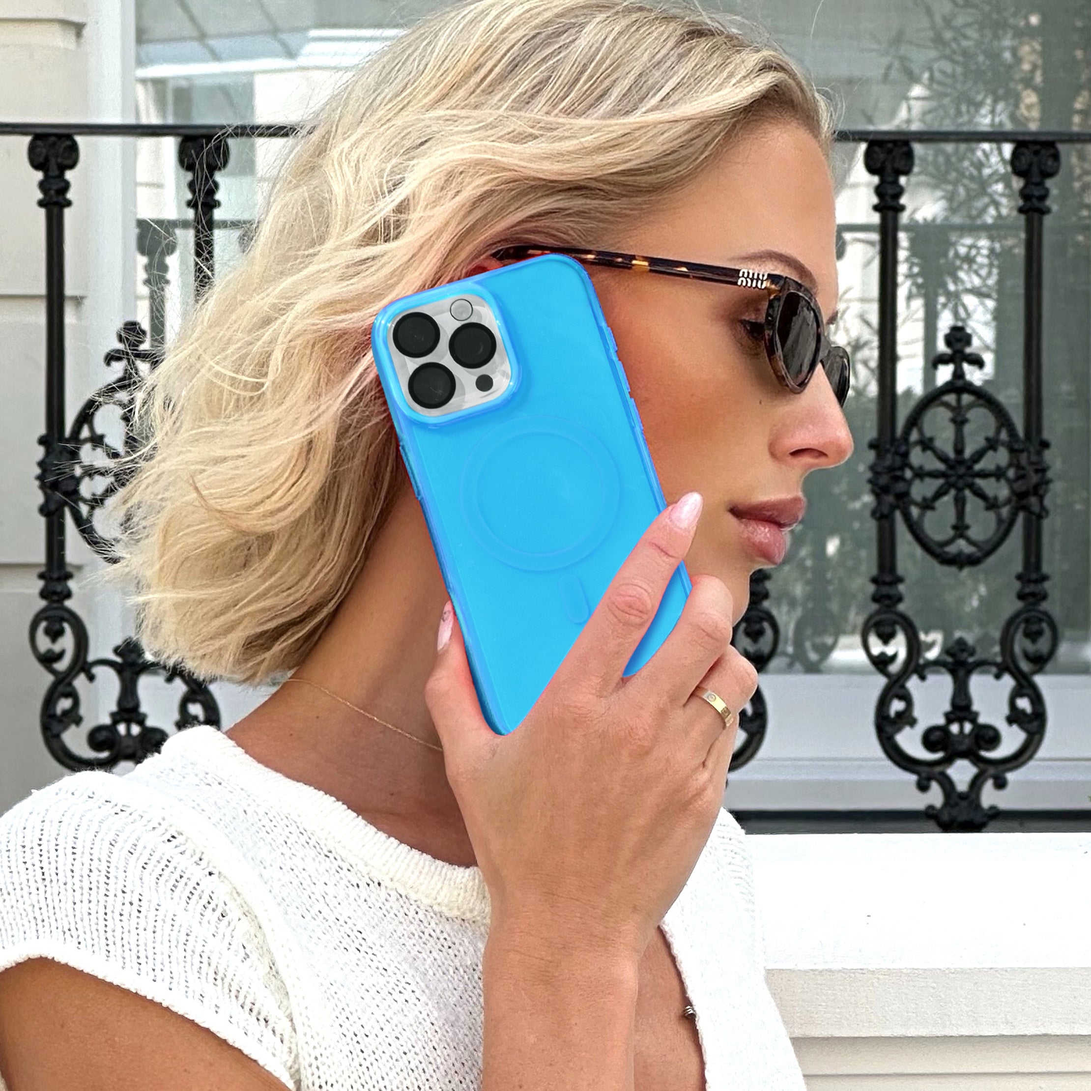 Stand out from the crowd with this bright blue neon clear case!