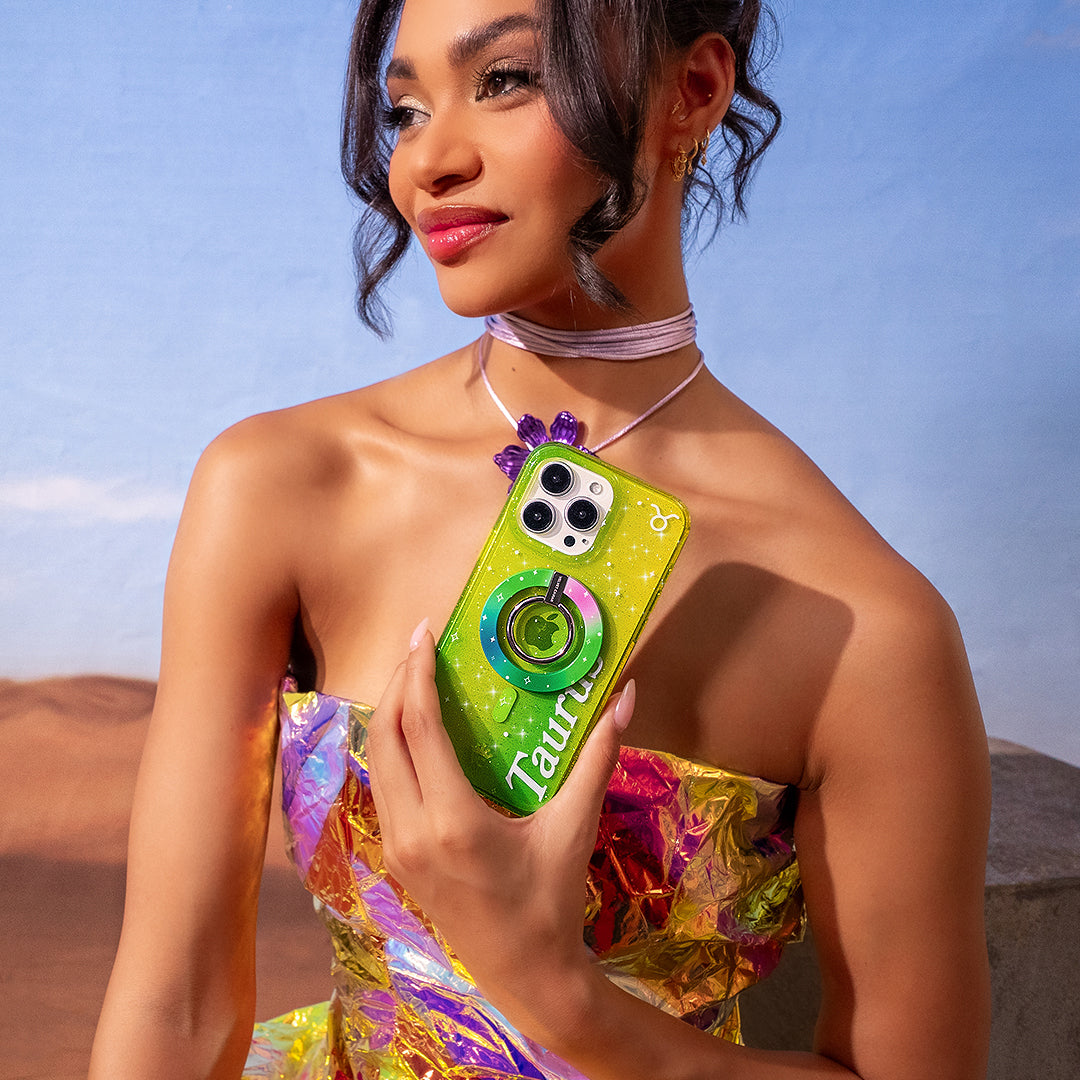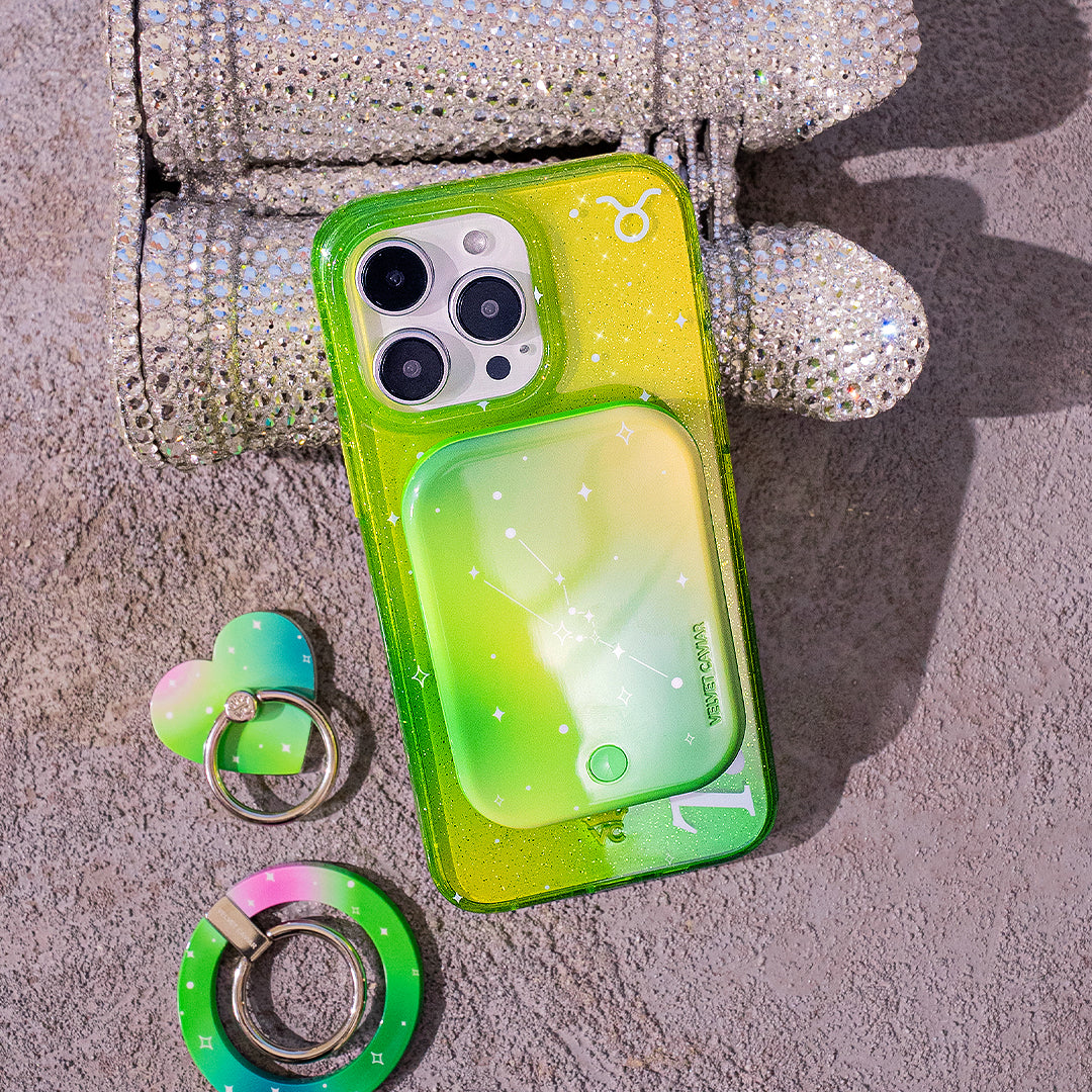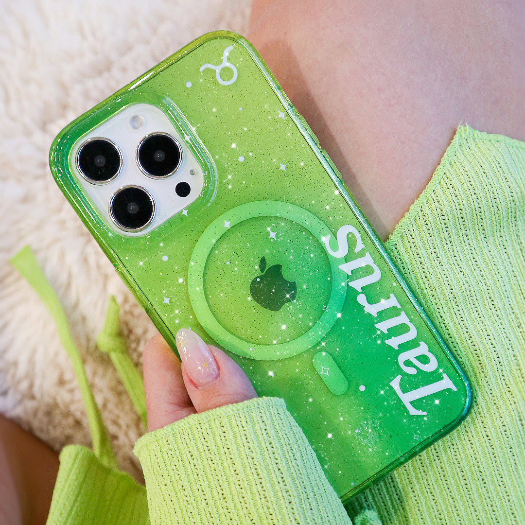 Taurus are Generous, Determined, and Outgoing! This MagSafe case comes in a gorgeous gold and green colorway inspired by the unique elements of Taurus with silver glitter sprinkled into the base and bumper. This case is part of our Zodiac Collection in collaboration with Sanctuary™
