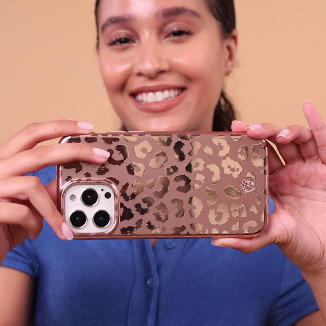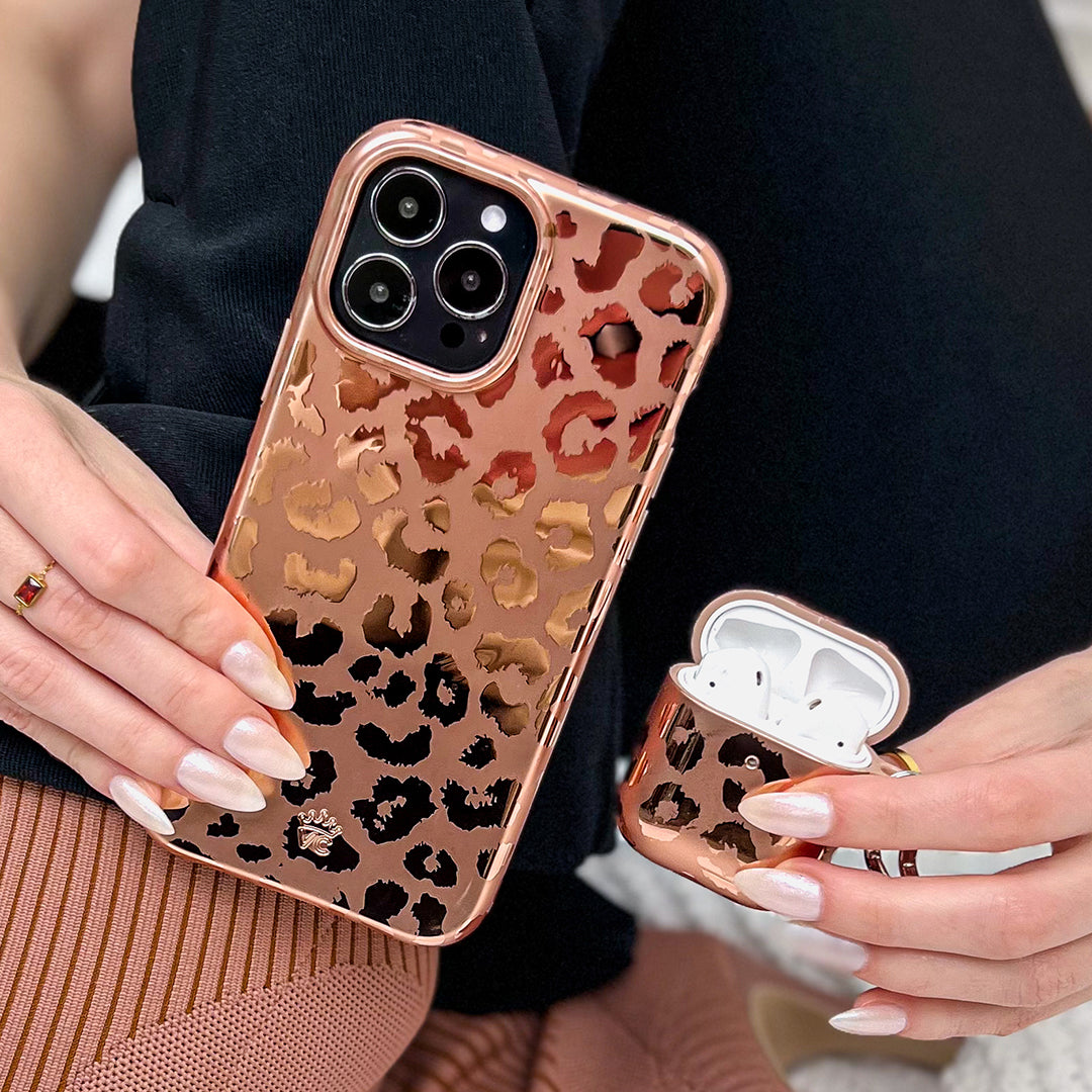 One word. FIERCE! This protective case features a metallic bronze base and glossy leopard spots.