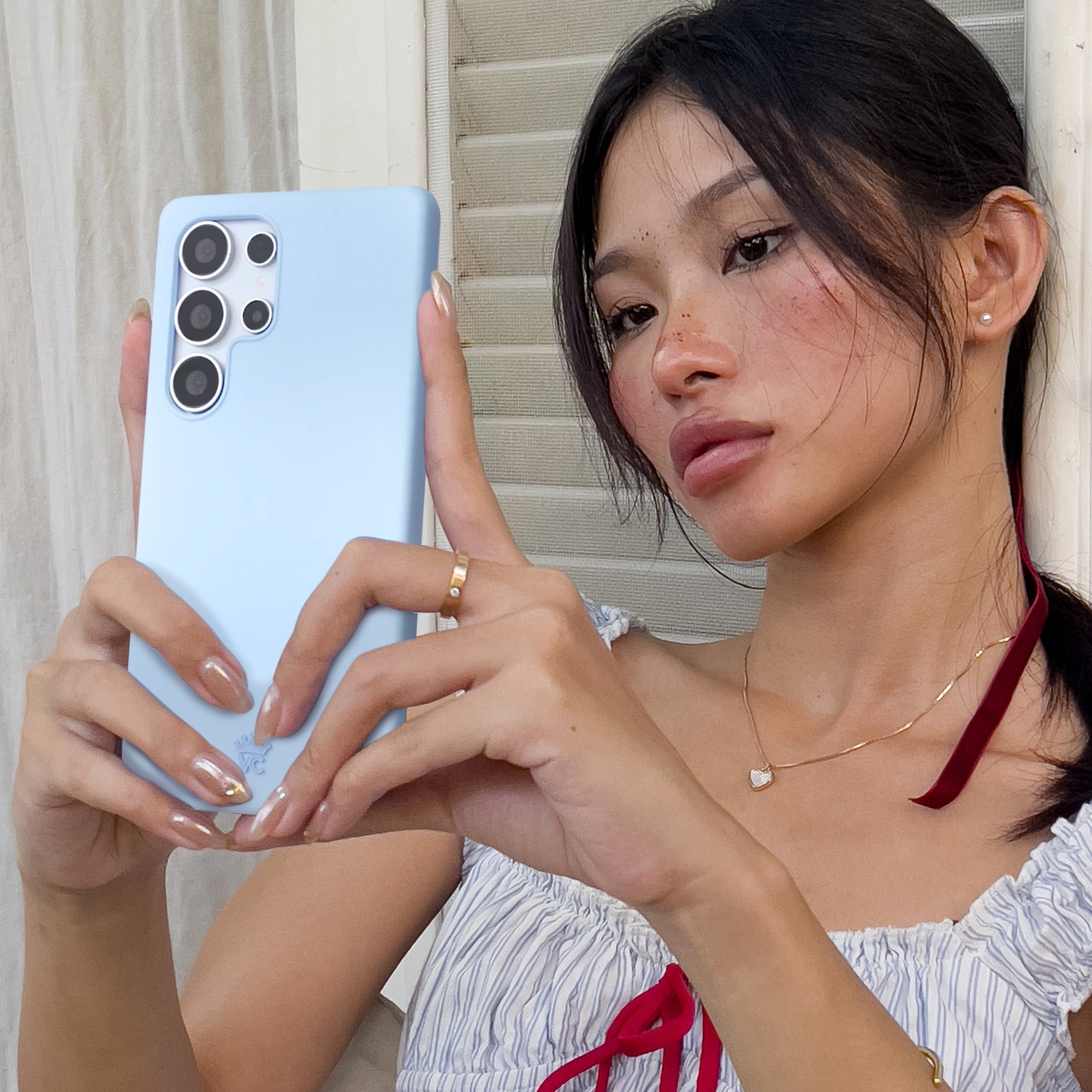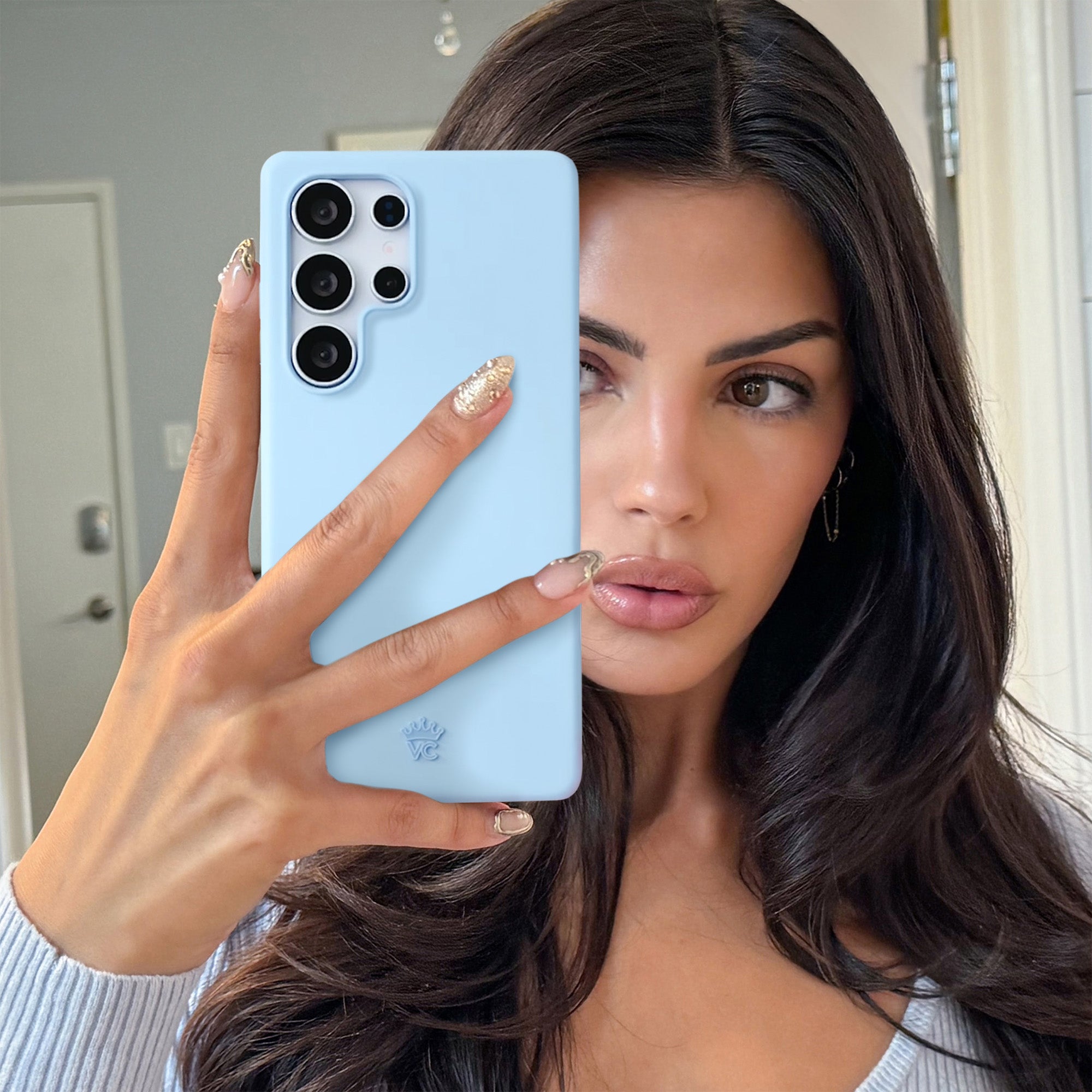 Trend alert! Thisprotective powder blue case features a new SatinShield™️ finish for a smooth in-hand feel and added dust protection.