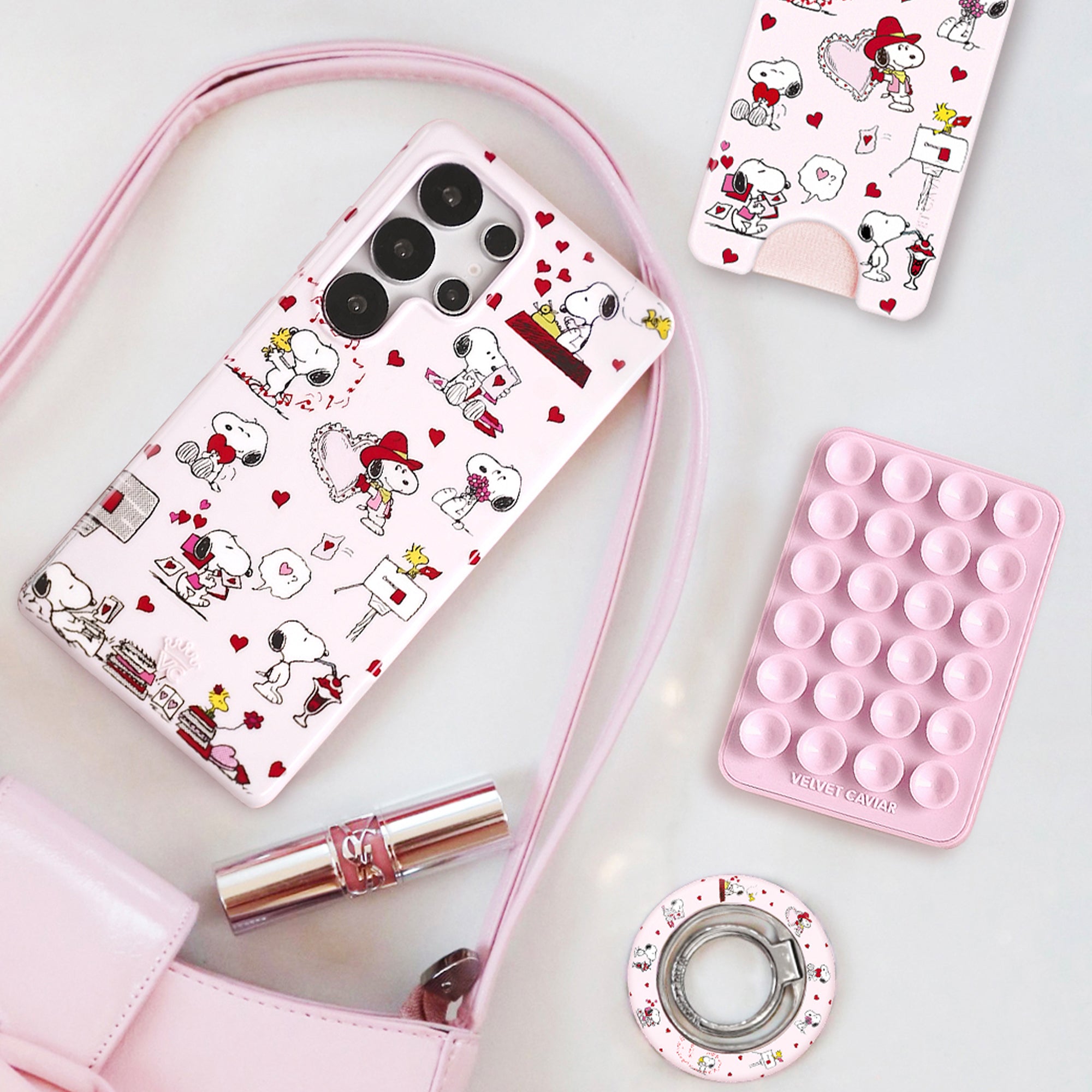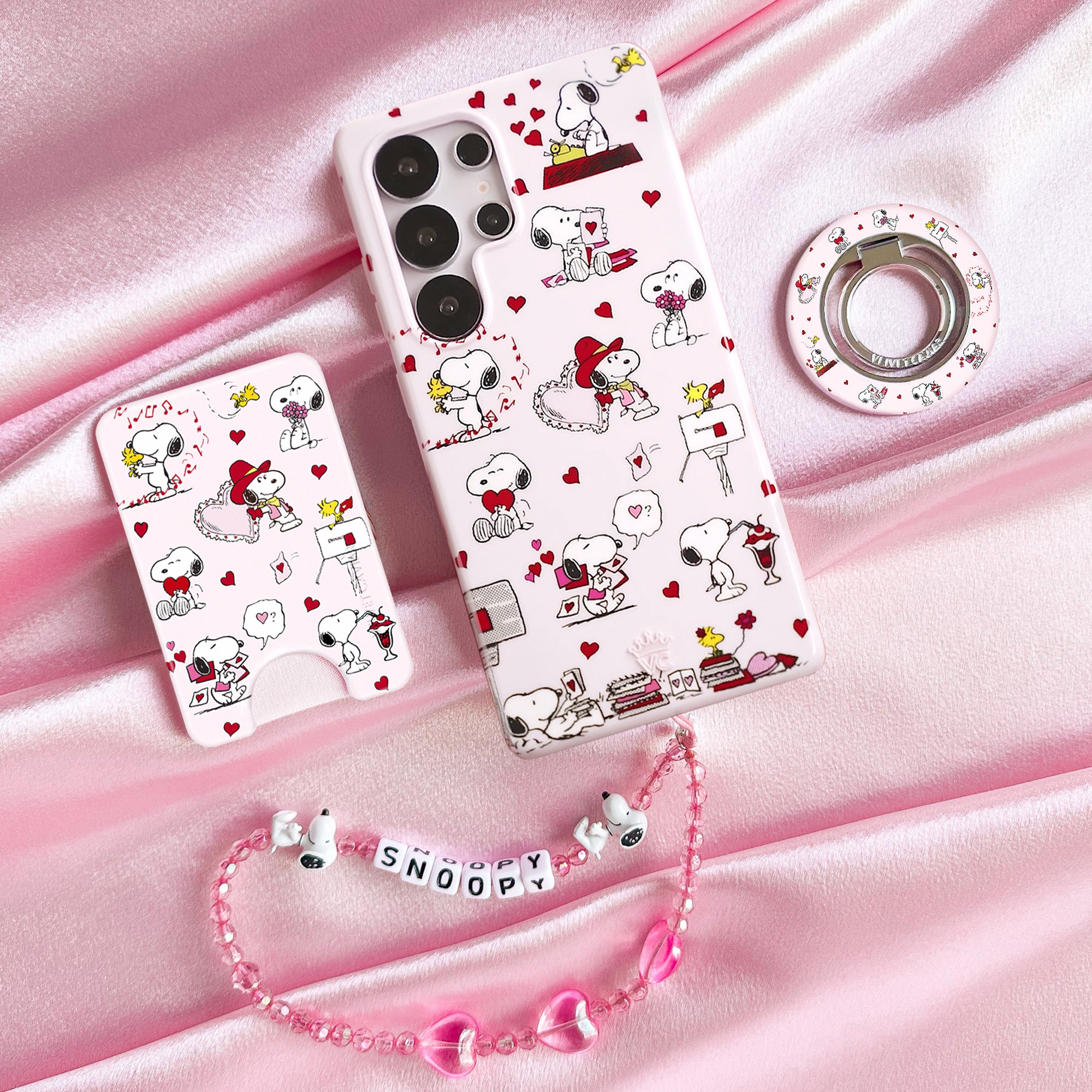 VC loves Snoopy! This glossy protective case features Snoopy in a variety of loving moods on a baby pink base. In collaboration with Peanuts™