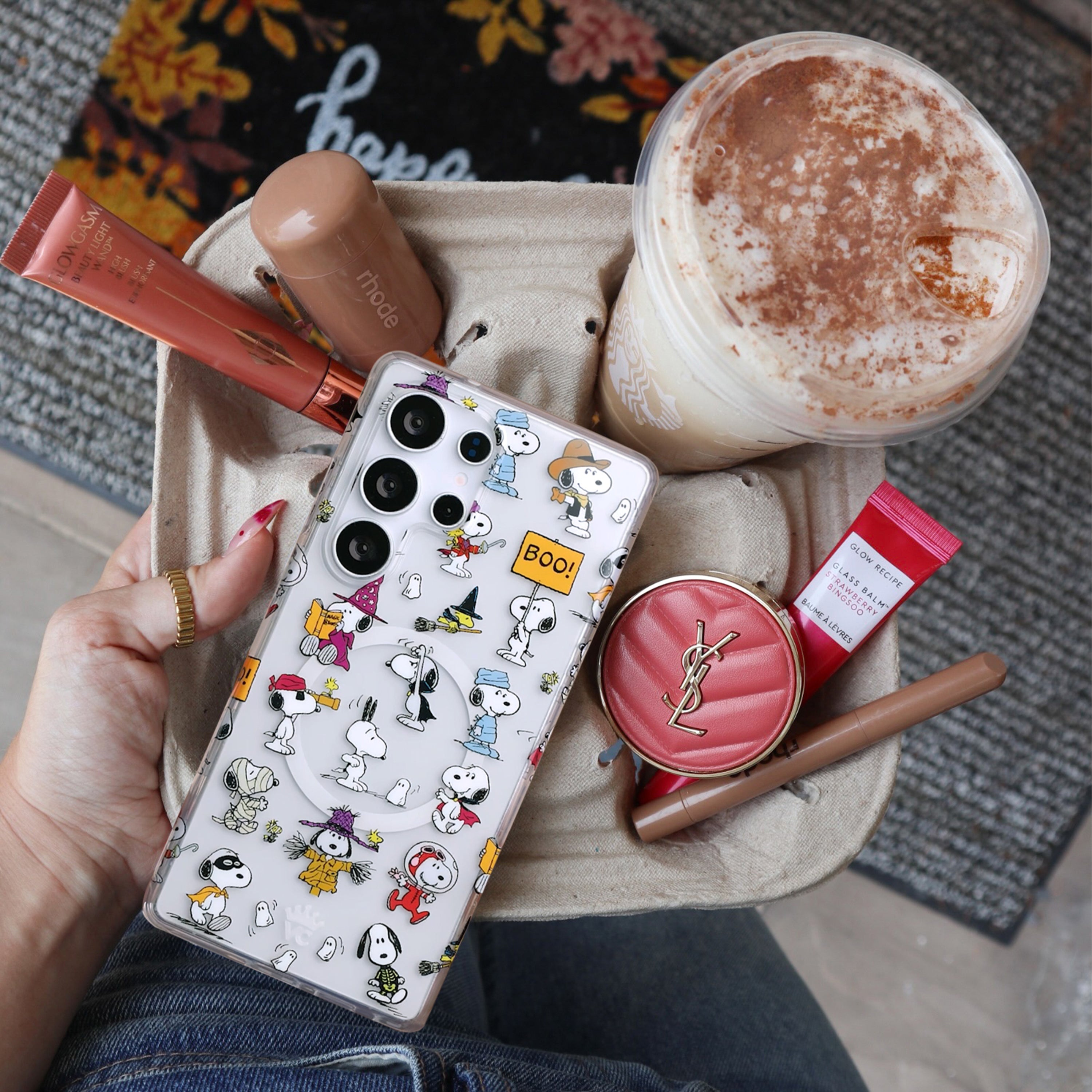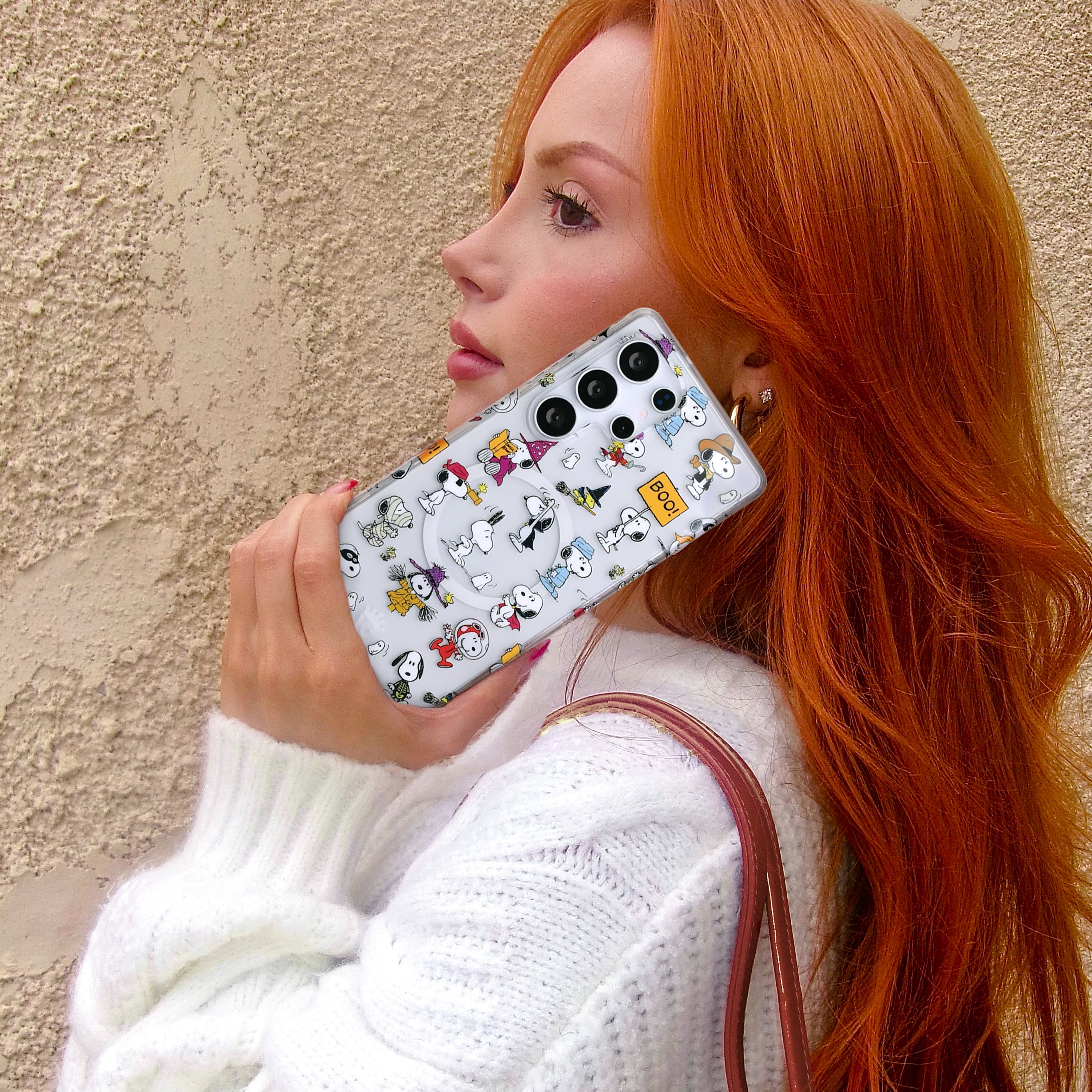 VC loves Snoopy! This protective case features Snoopy and Woodstock in a variety of Halloween costumes all in high gloss on a clear case.