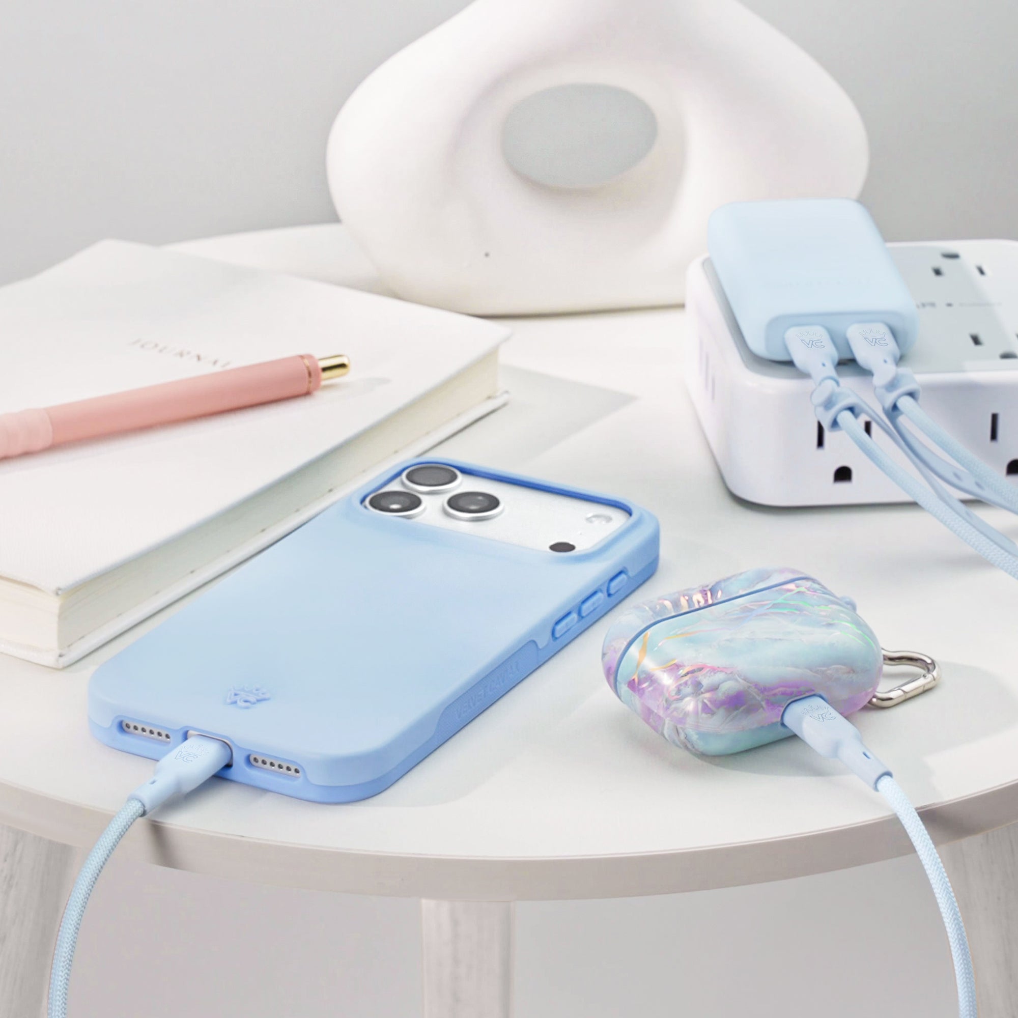 Whisper Blue Fast Charging Set, Dual Port Wall Adapter + 6ft USB-C Cable