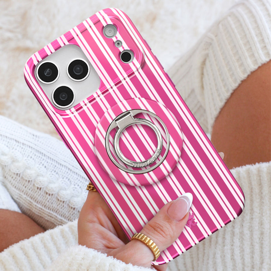Happy Holidays! This protective case features pink chrome and glossy white candy cane stripes throughout. This case is part of our Limited Edition Holiday Dreams collection celebrating Christmas and Hanukkah.