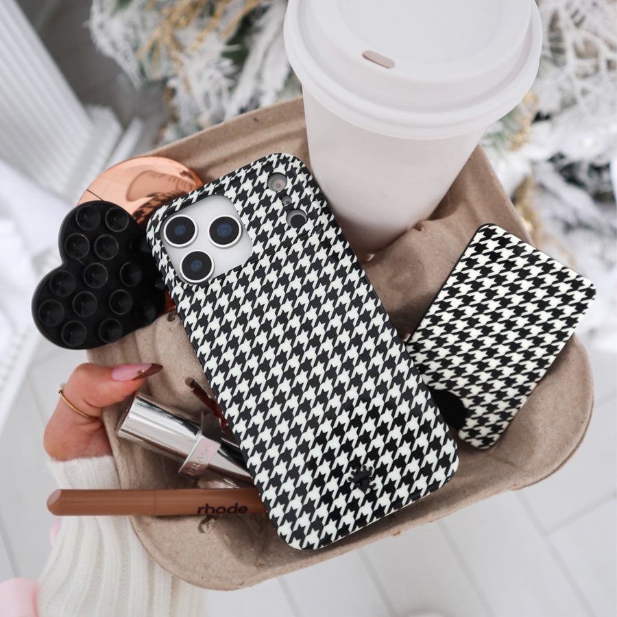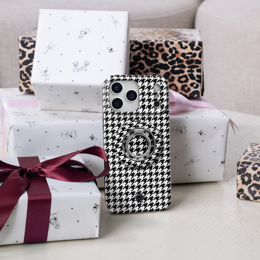 Happy Holidays! This MagSafe case features a glossy black and white houndstooth print. This case is part of our Limited Edition Holiday Dreams collection celebrating Christmas and Hanukkah.